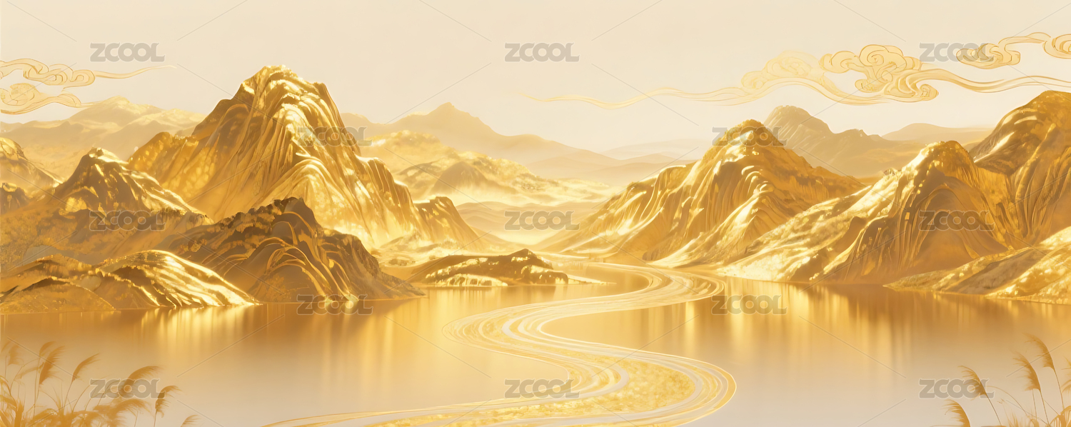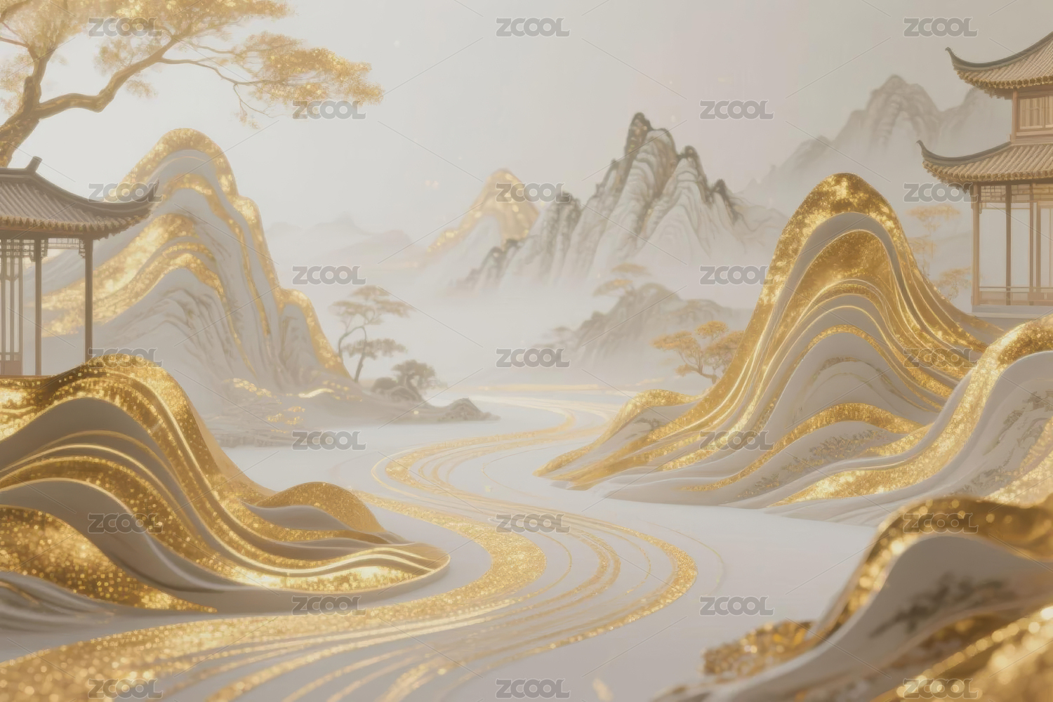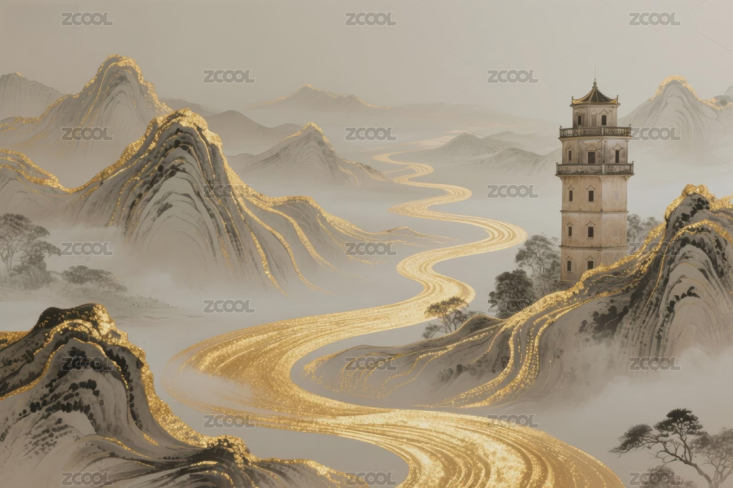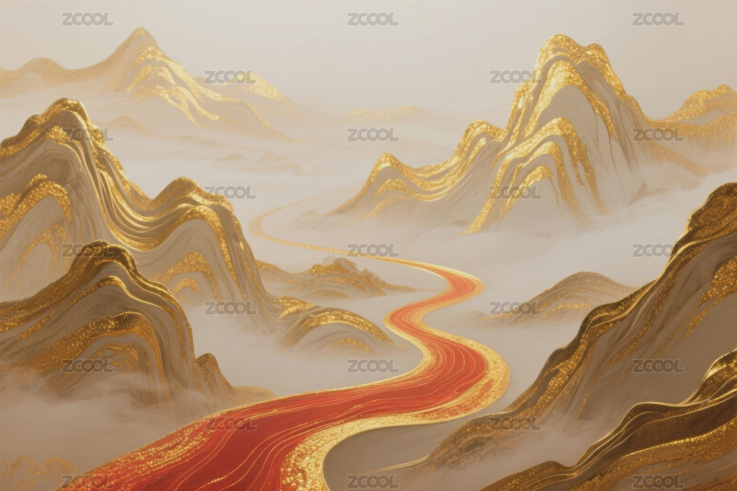 艺术, 传统, 自然, 风景, 河流, 云雾, 美丽, 绘画, 梦幻, 山峰