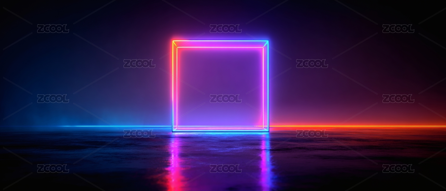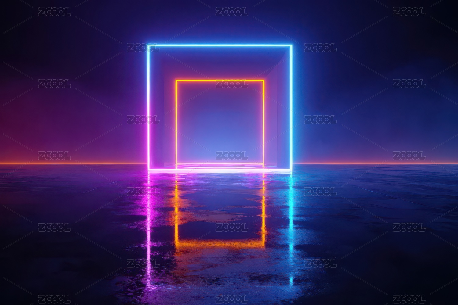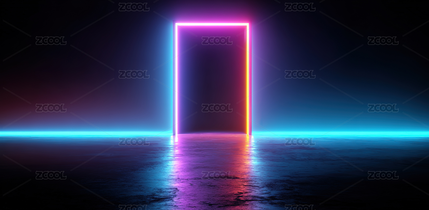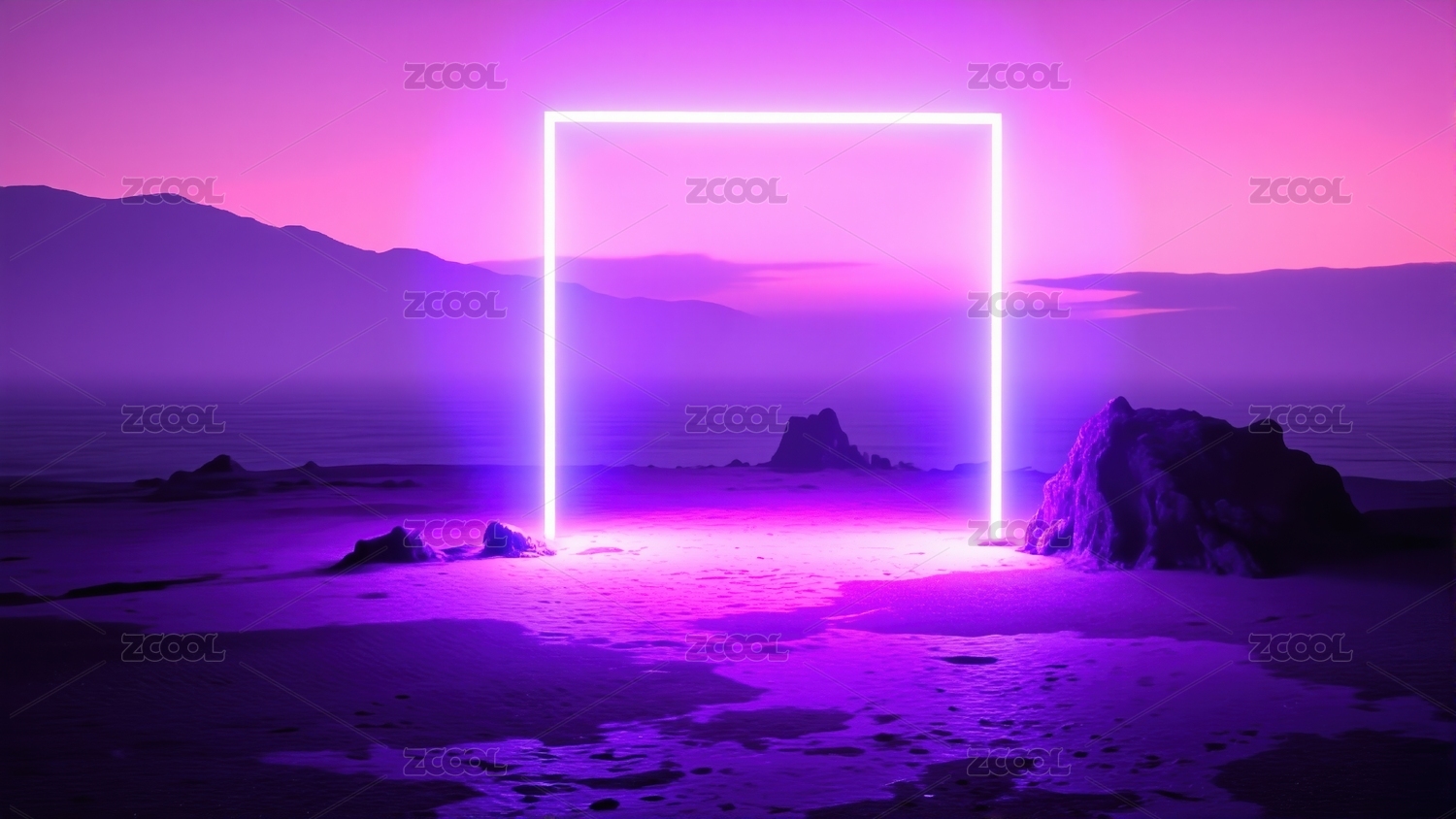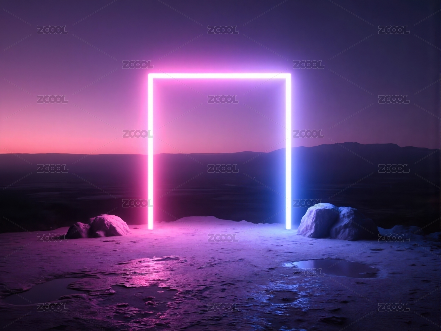蓝紫色霓虹灯框架在野外空旷山间抽象背景
