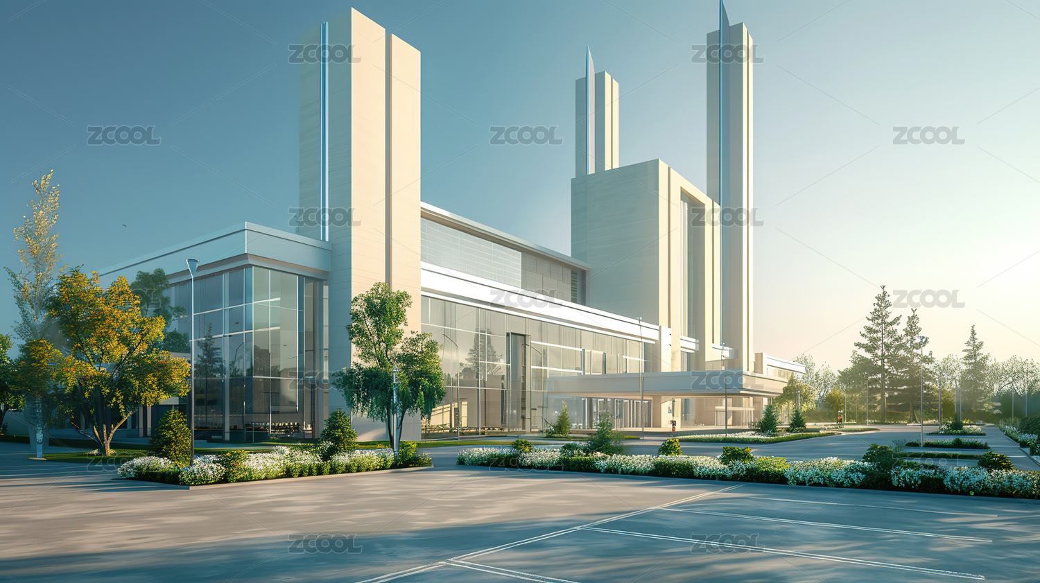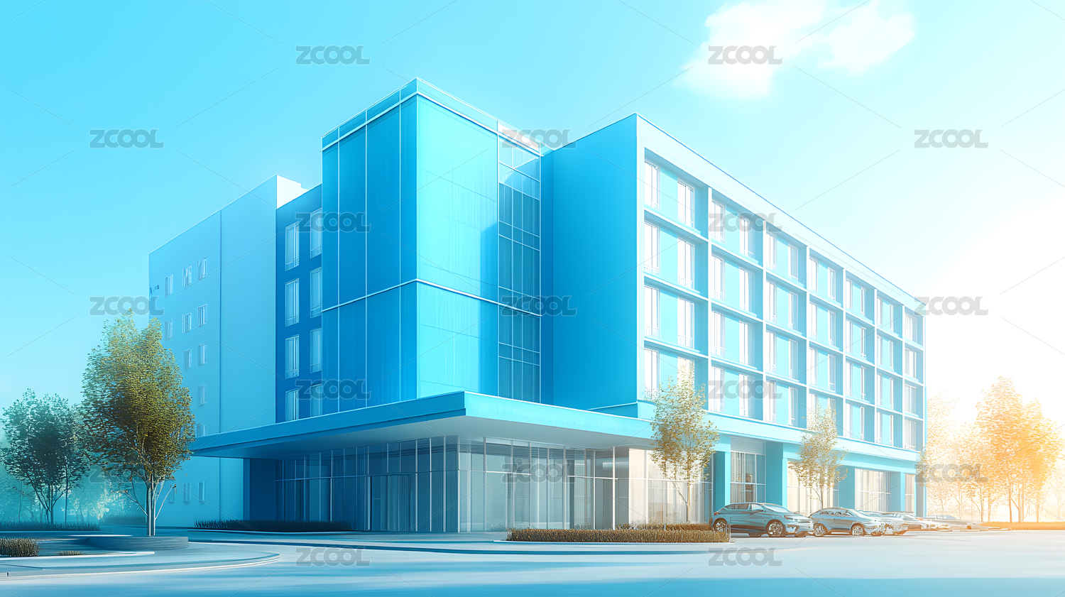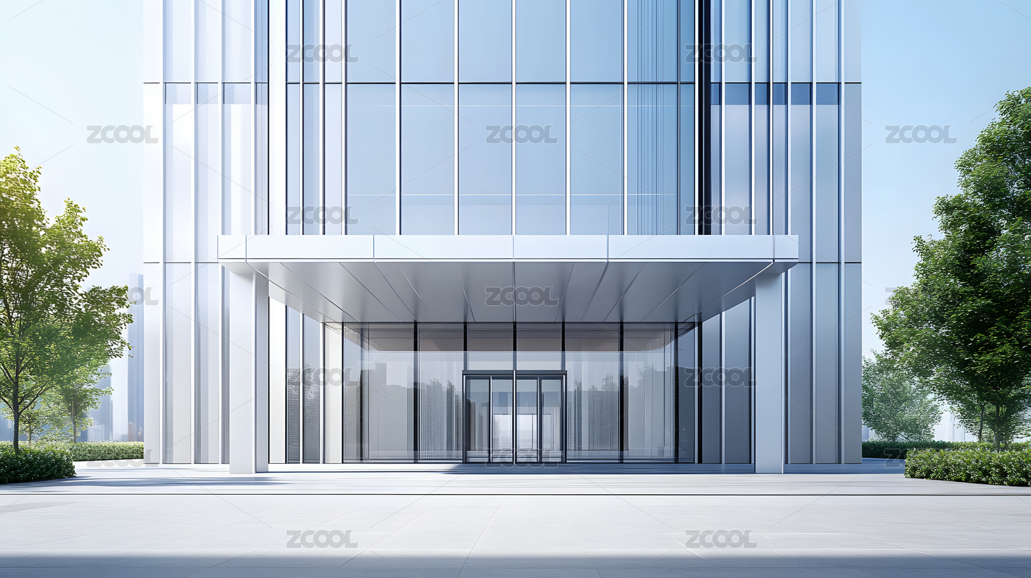 现代建筑外观阳光明媚的蓝天玻璃幕墙