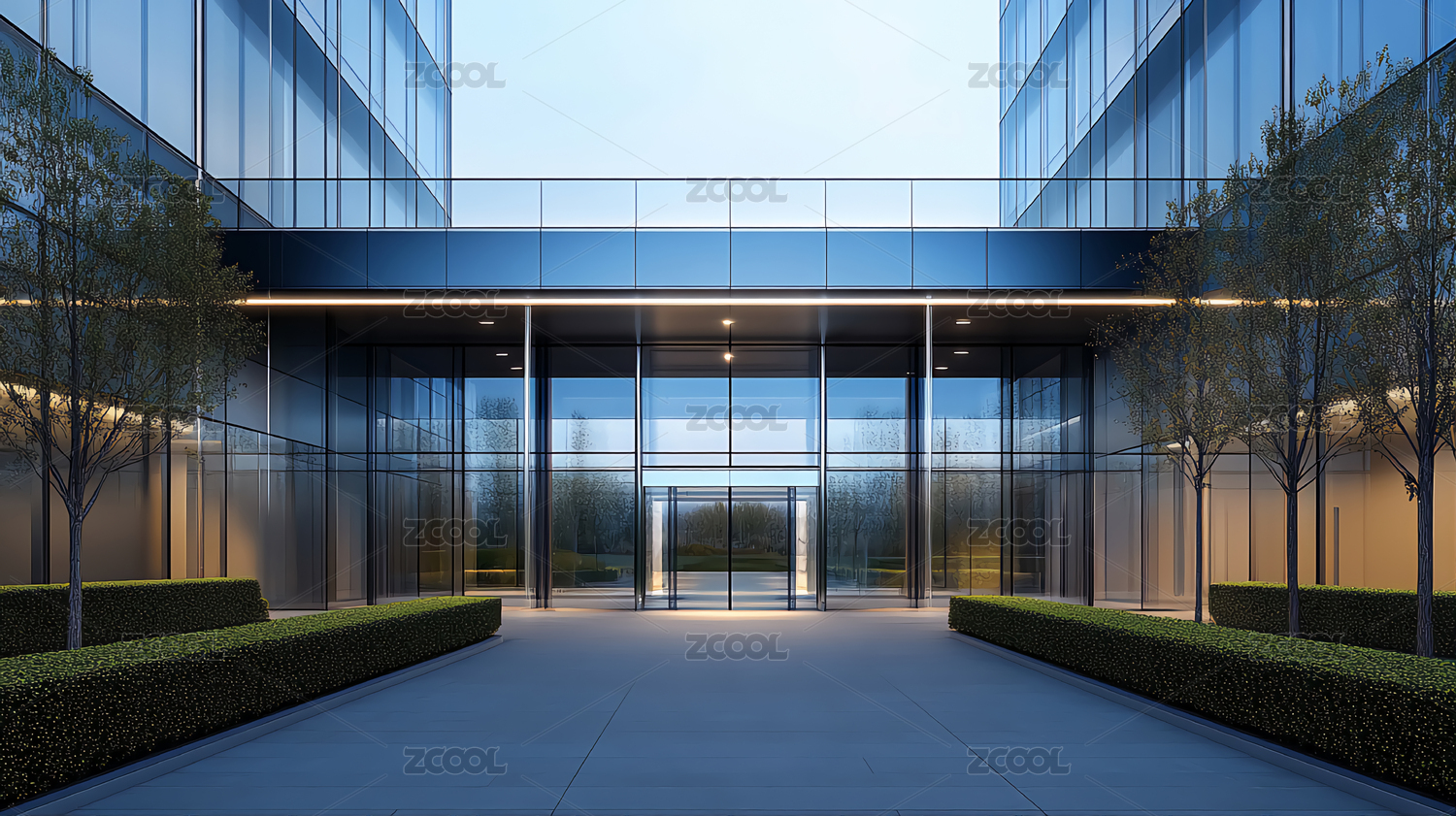 建筑,外观,玻璃,现代,城市,幕墙,办公楼,结构,干净,树木