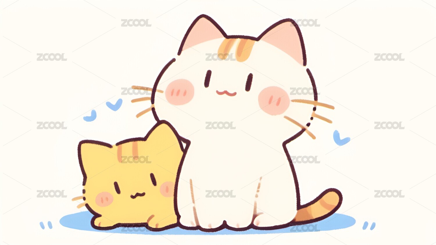 卡通,小猫,猫,Q版,可爱,治愈,壁纸,动物,插画