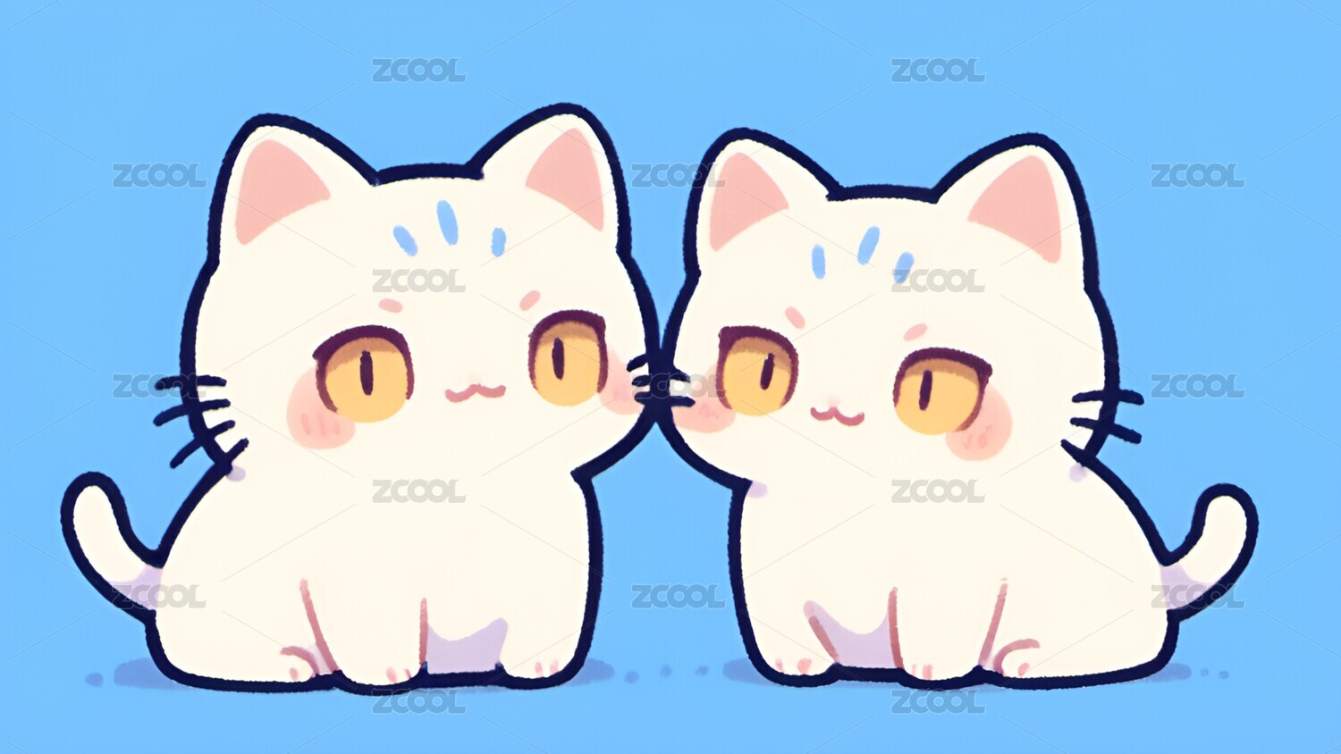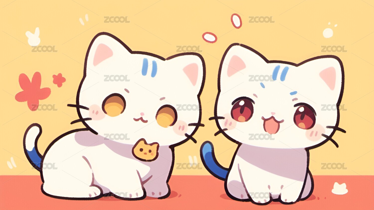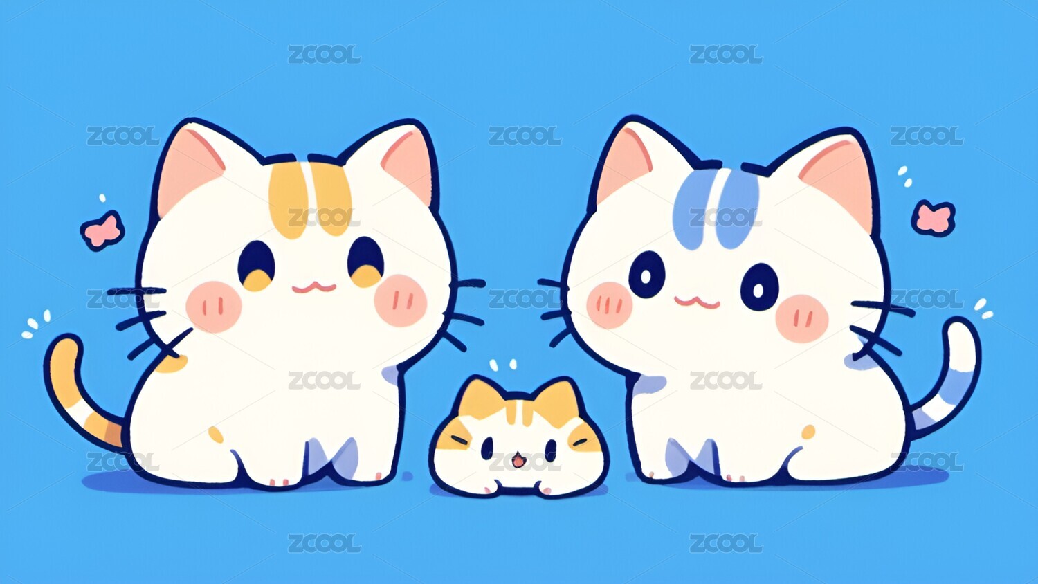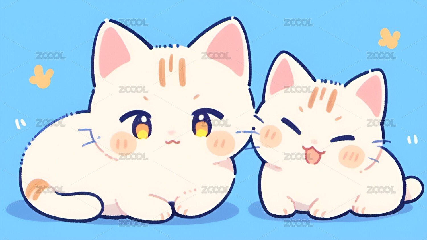 卡通,小猫,猫,Q版,可爱,治愈,壁纸,动物,插画