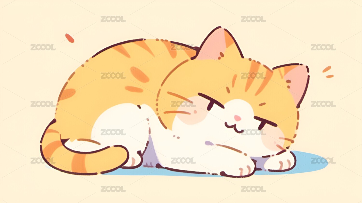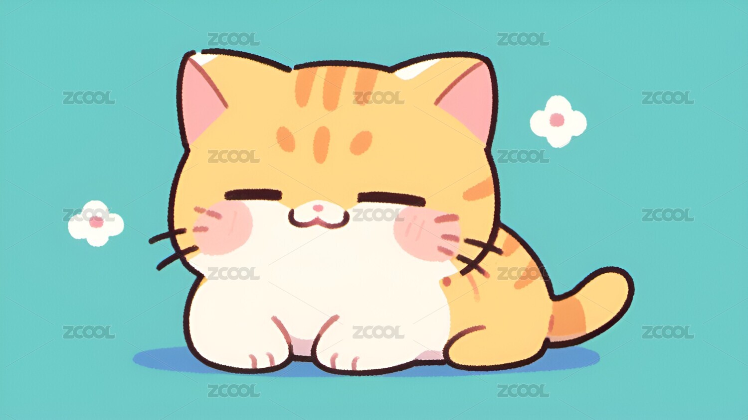 卡通,小猫,猫,Q版,可爱,治愈,壁纸,动物,插画