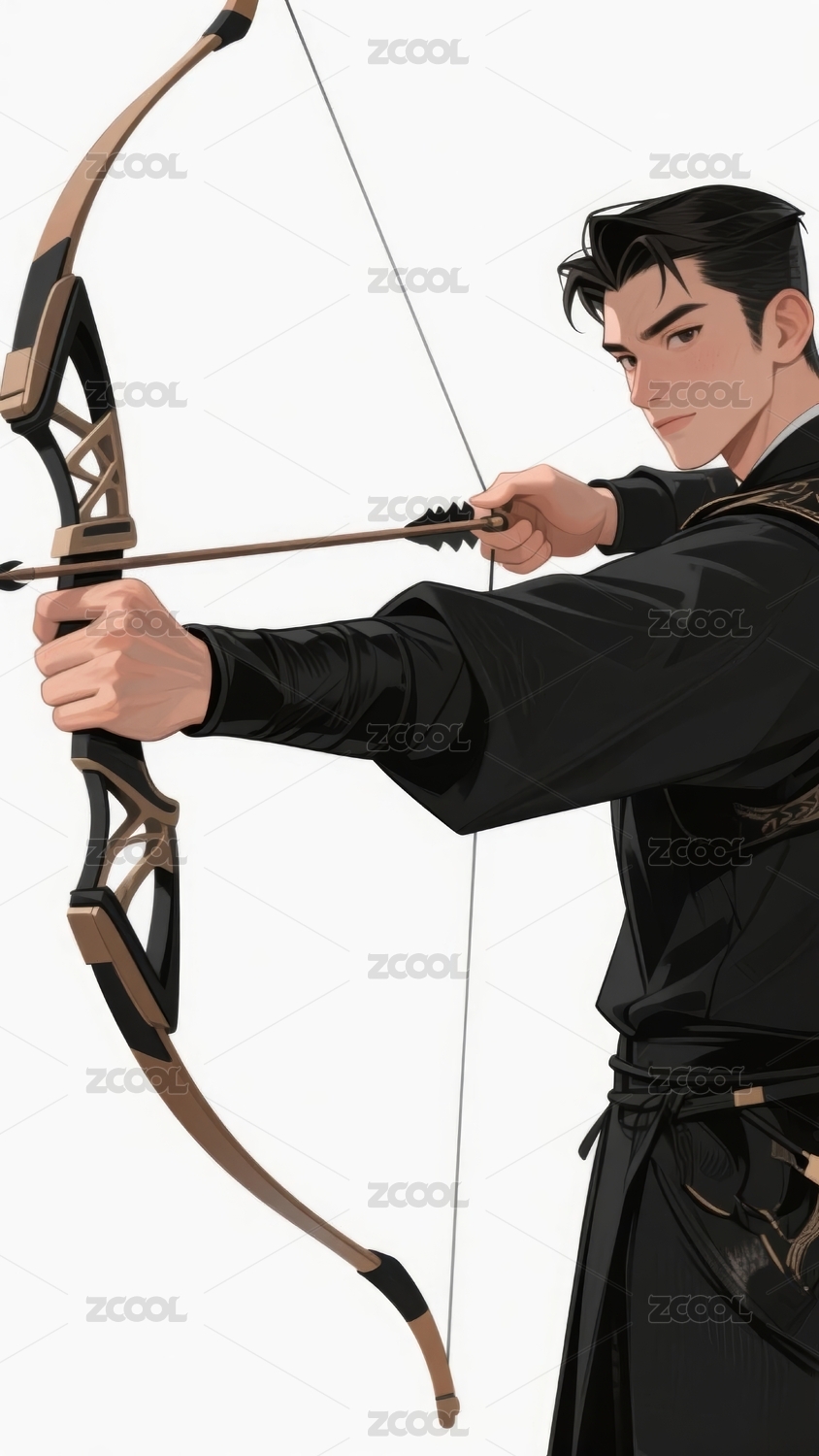 现代男子拉弓射箭的全身插画