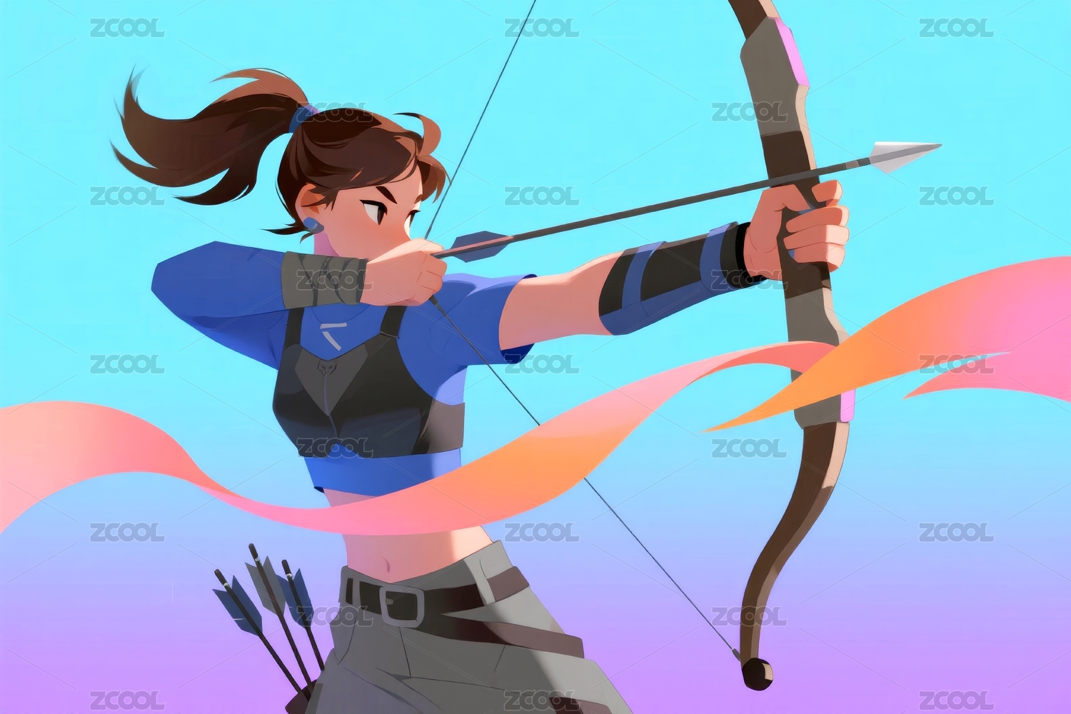 射箭比赛中拉弓的卡通女孩