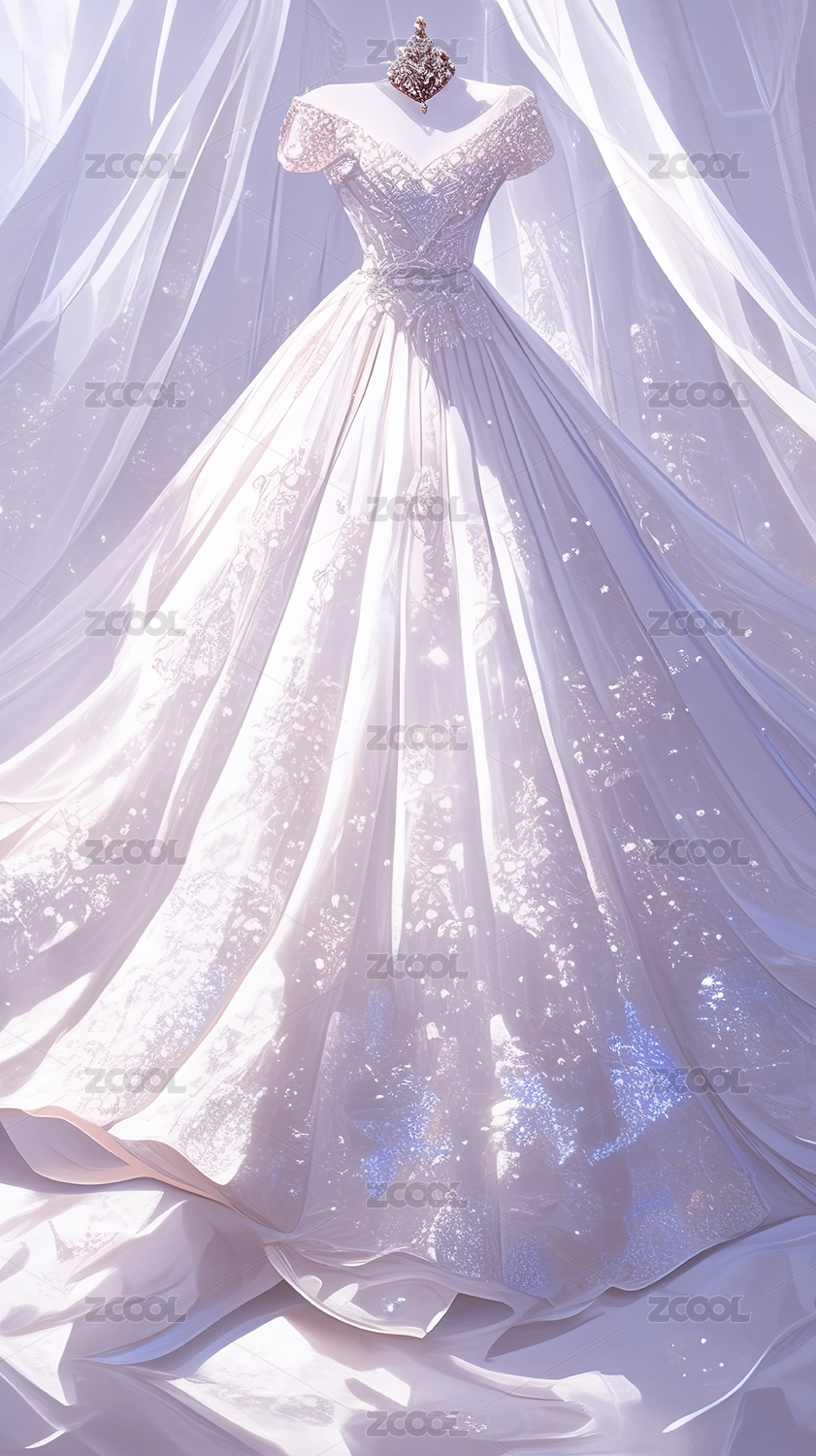 婚纱,白色,插画,星光,梦幻,质感,礼服,婚庆,优雅,设计