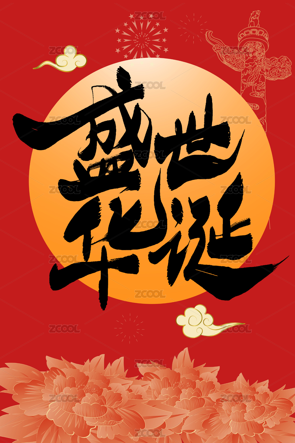 盛世华诞书法艺术字体海报