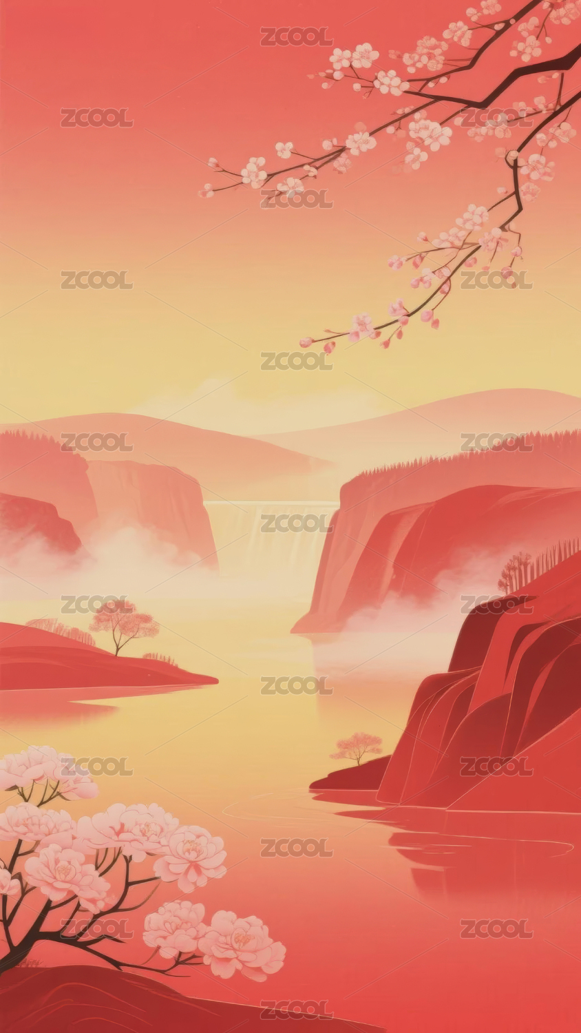 自然, 风景, 艺术, 美丽, 和谐, 清新, 天空, 插画, 宁静, 花朵