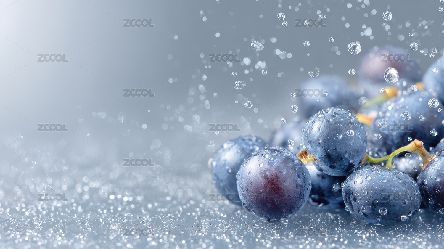 蓝莓冰块水珠