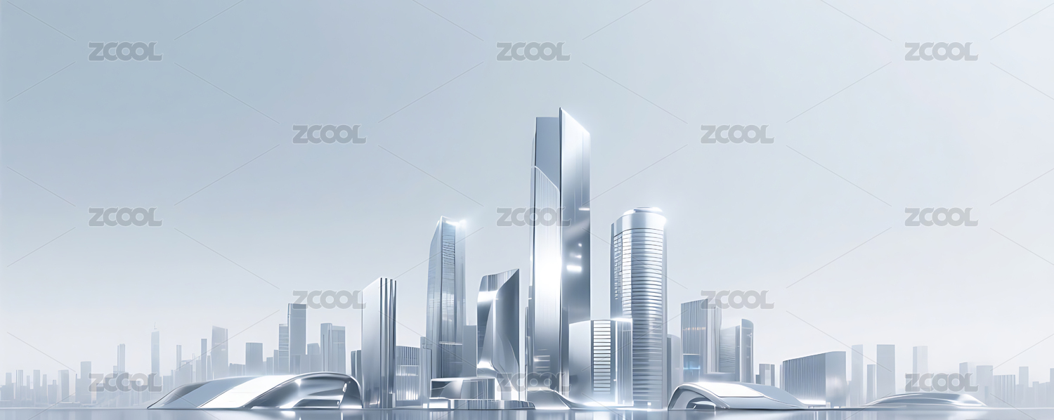 银色金属质感城市建筑天际线背景