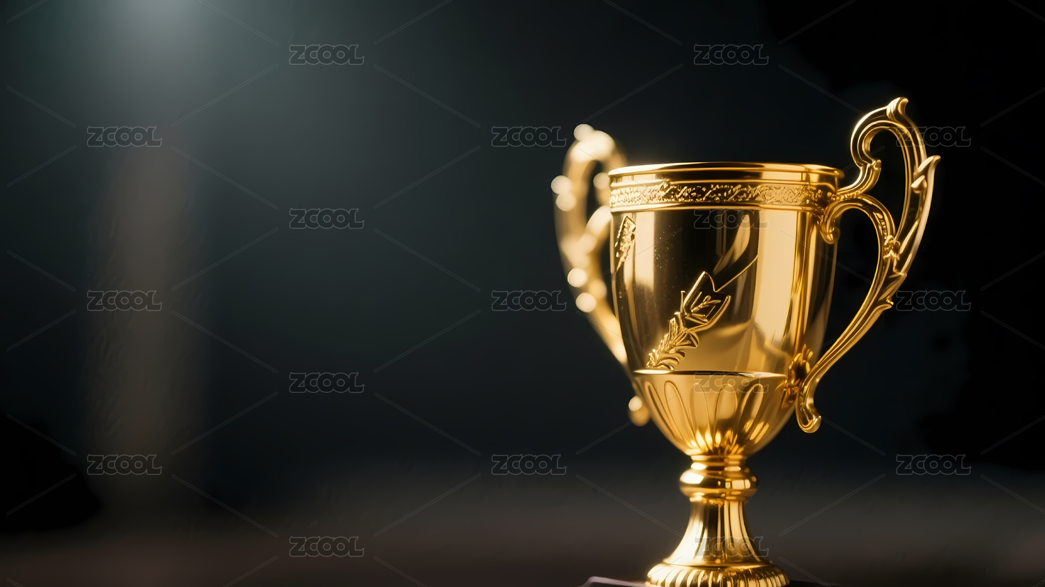 金牌奖杯竞赛奖杯在抽象模糊的散景背景