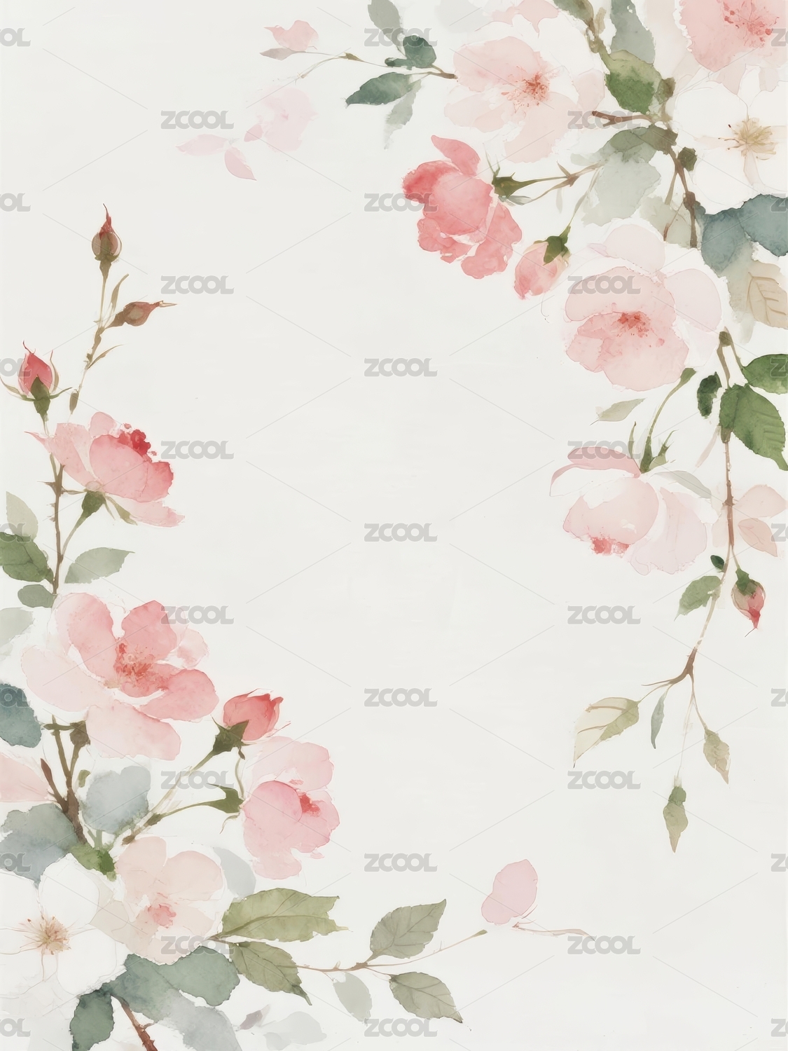 淡粉花卉装饰的空白背景图
