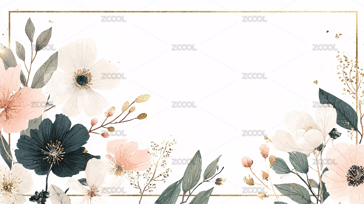 水彩花卉边框金色灰白意境