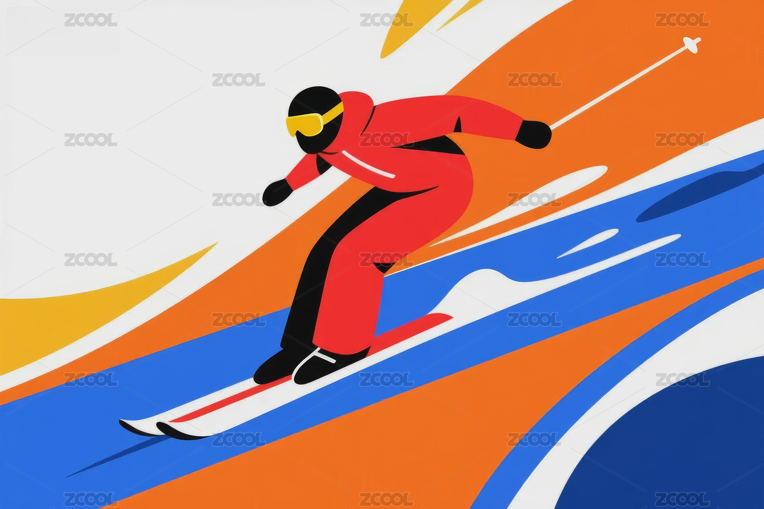 炫彩滑雪人物插画