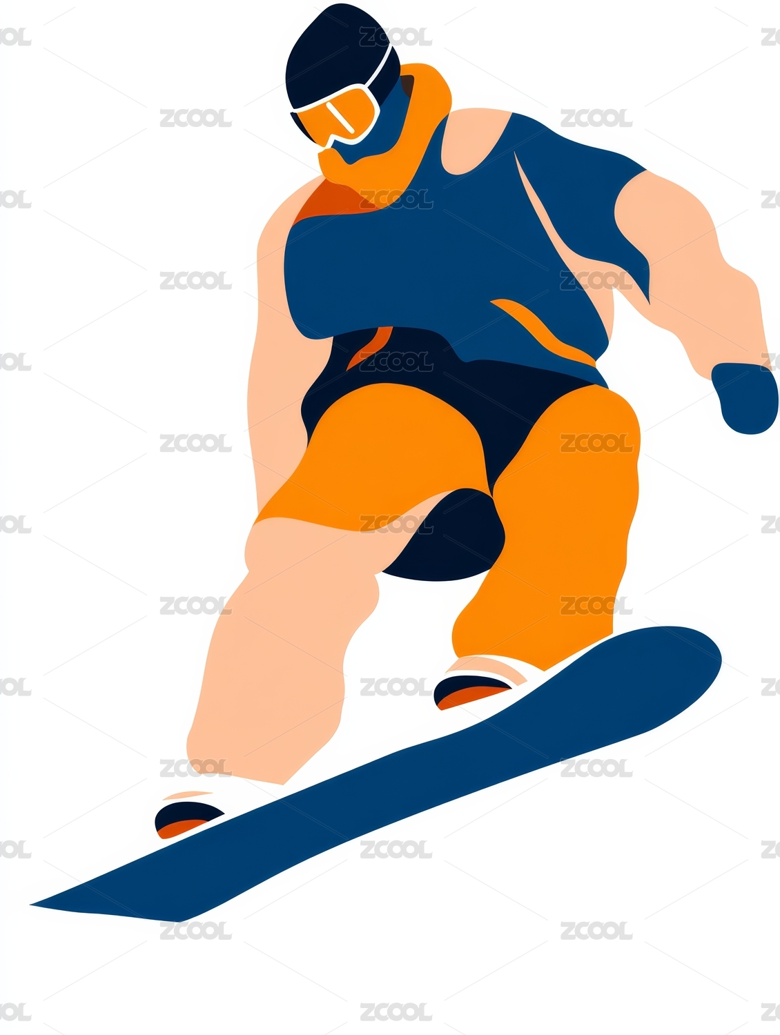 男子单板滑雪矢量手绘插画