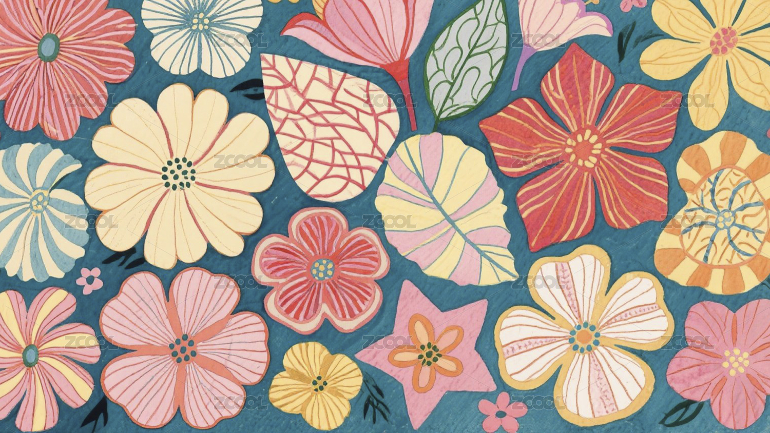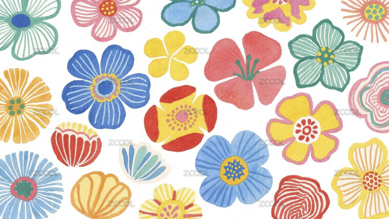 花卉图案,手绘风格,田园风,植物,花朵,装饰,壁纸,背景,纹理,清新