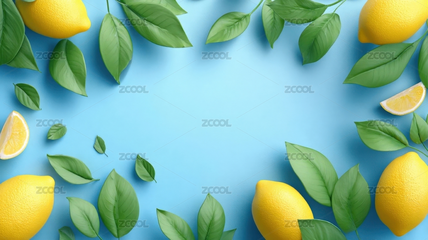 蓝色,背景,绿色,黄色,自然,夏季,柠檬,水果,新鲜,健康