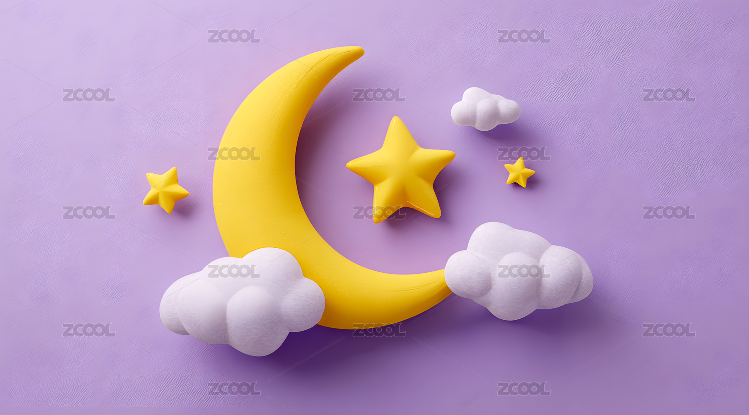 梦幻粉紫月亮云朵