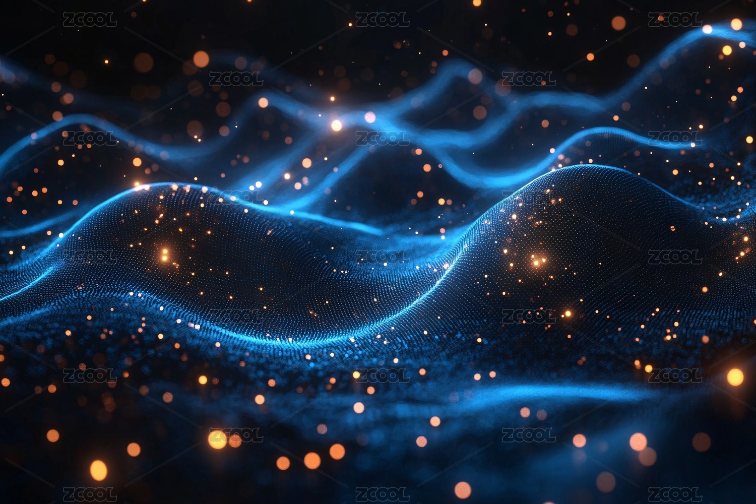 蓝色粒子波浪,深邃梦幻背景