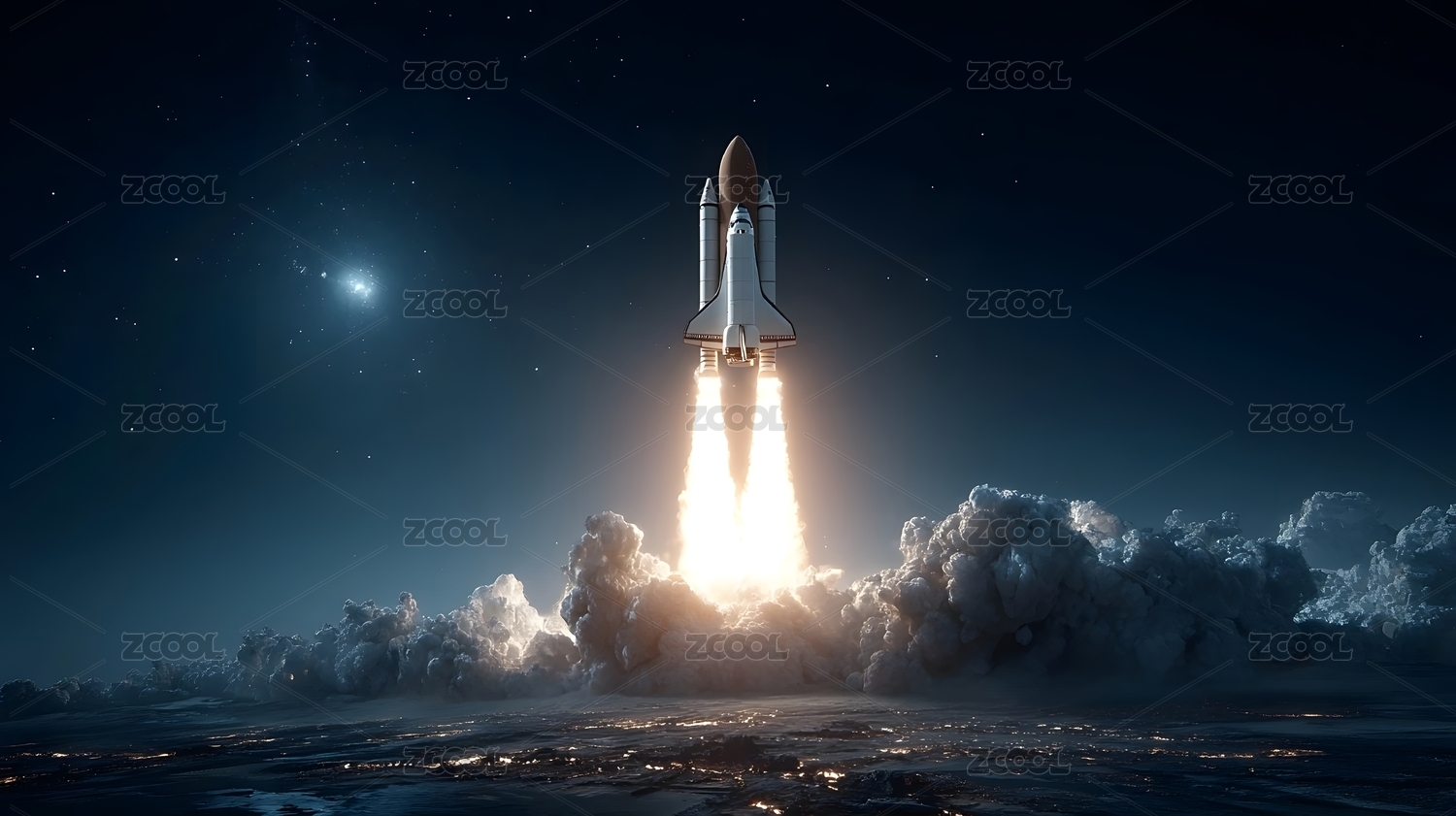 火箭升空夜空星云