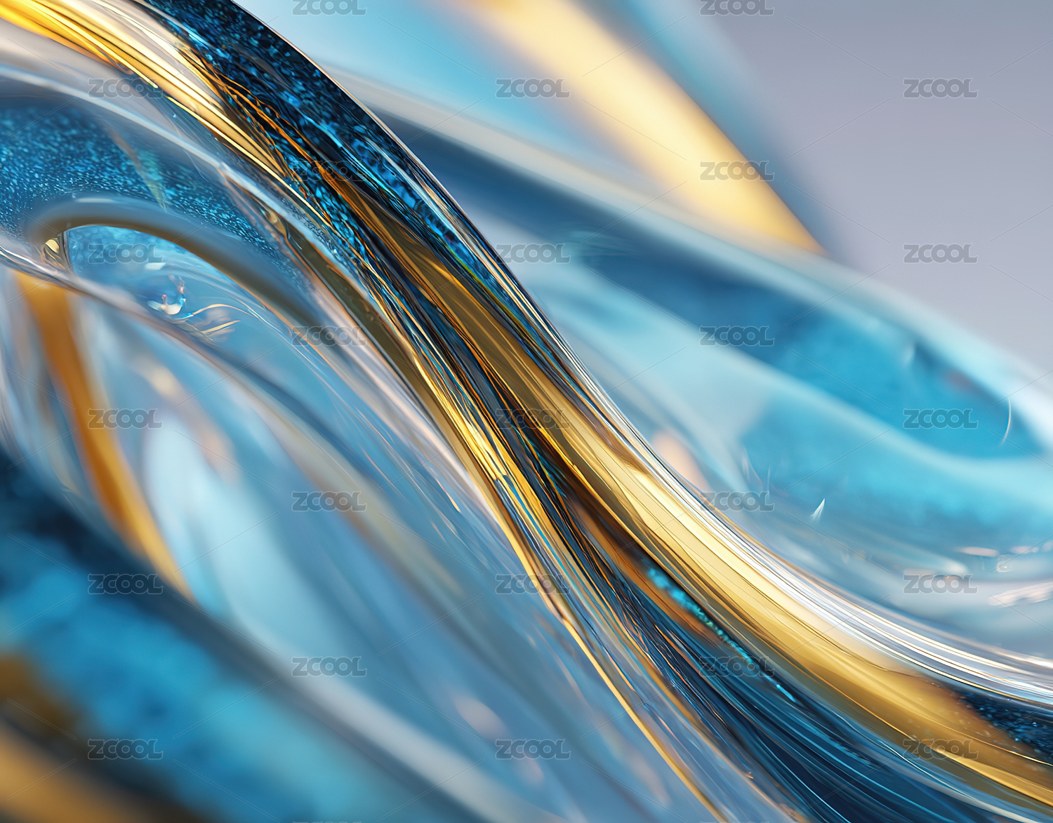 蓝色透明玻璃曲线特写