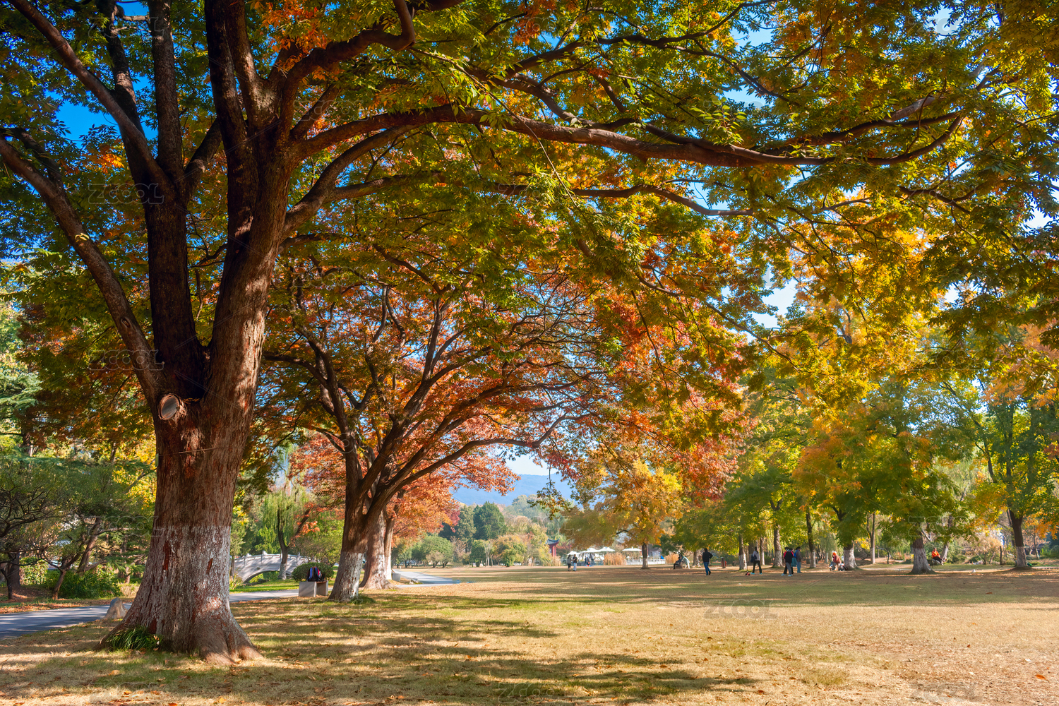 波士顿,秋天,公园,红叶,绿草,白椅,午后阳光,秋日氛围,静谧,自然景观