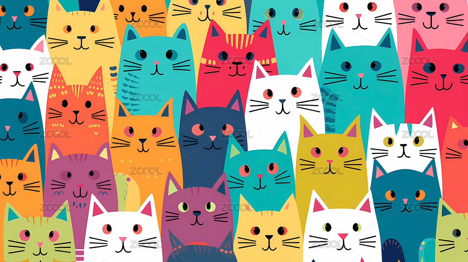 多彩猫咪图案
