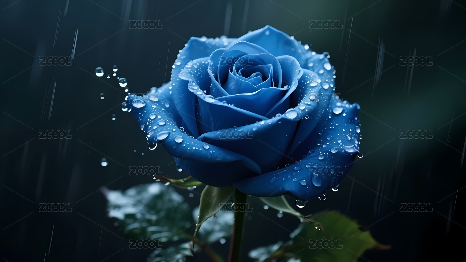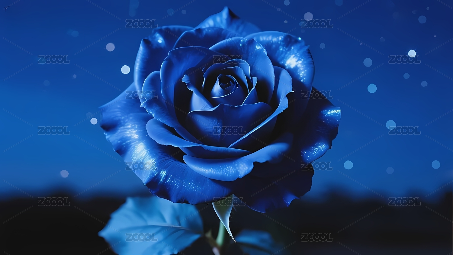 冬日草地上孤寂的蓝玫瑰与紫色花瓣