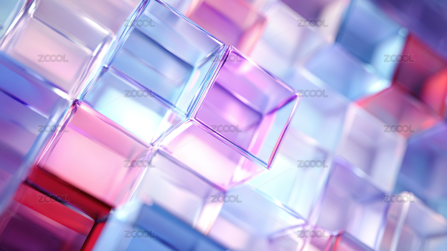 彩色透明渐变玻璃方块背景
