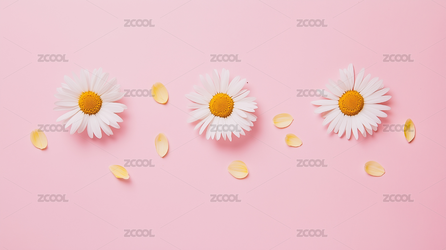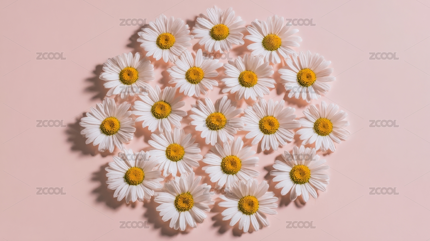 淡粉色背景上的圆形白色雏菊洋甘菊