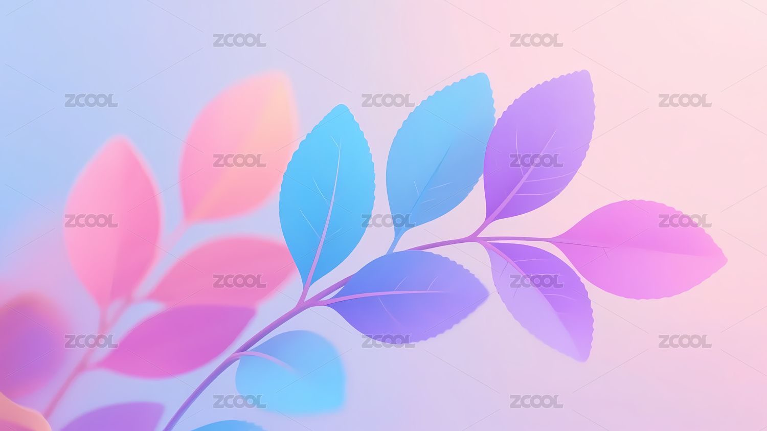 梦幻粉蓝渐变叶子