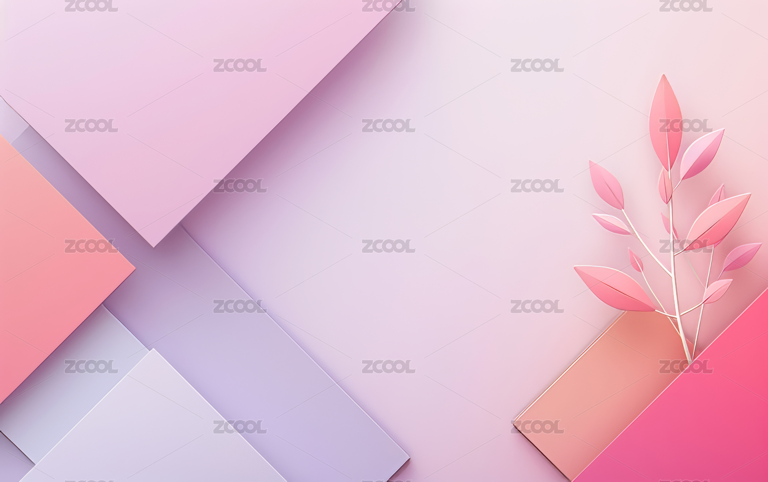 粉紫叶子与蓝色调背景