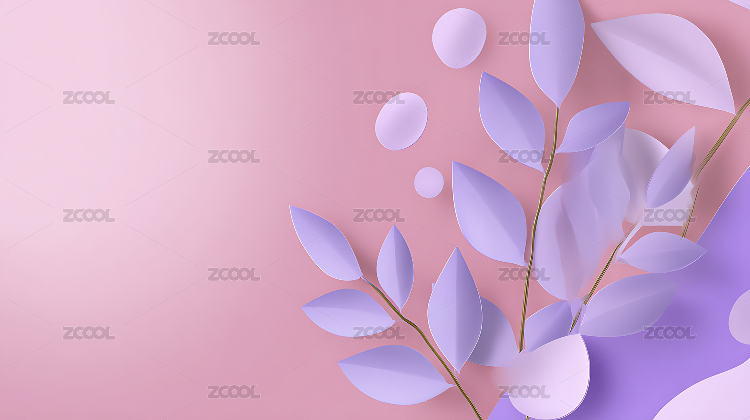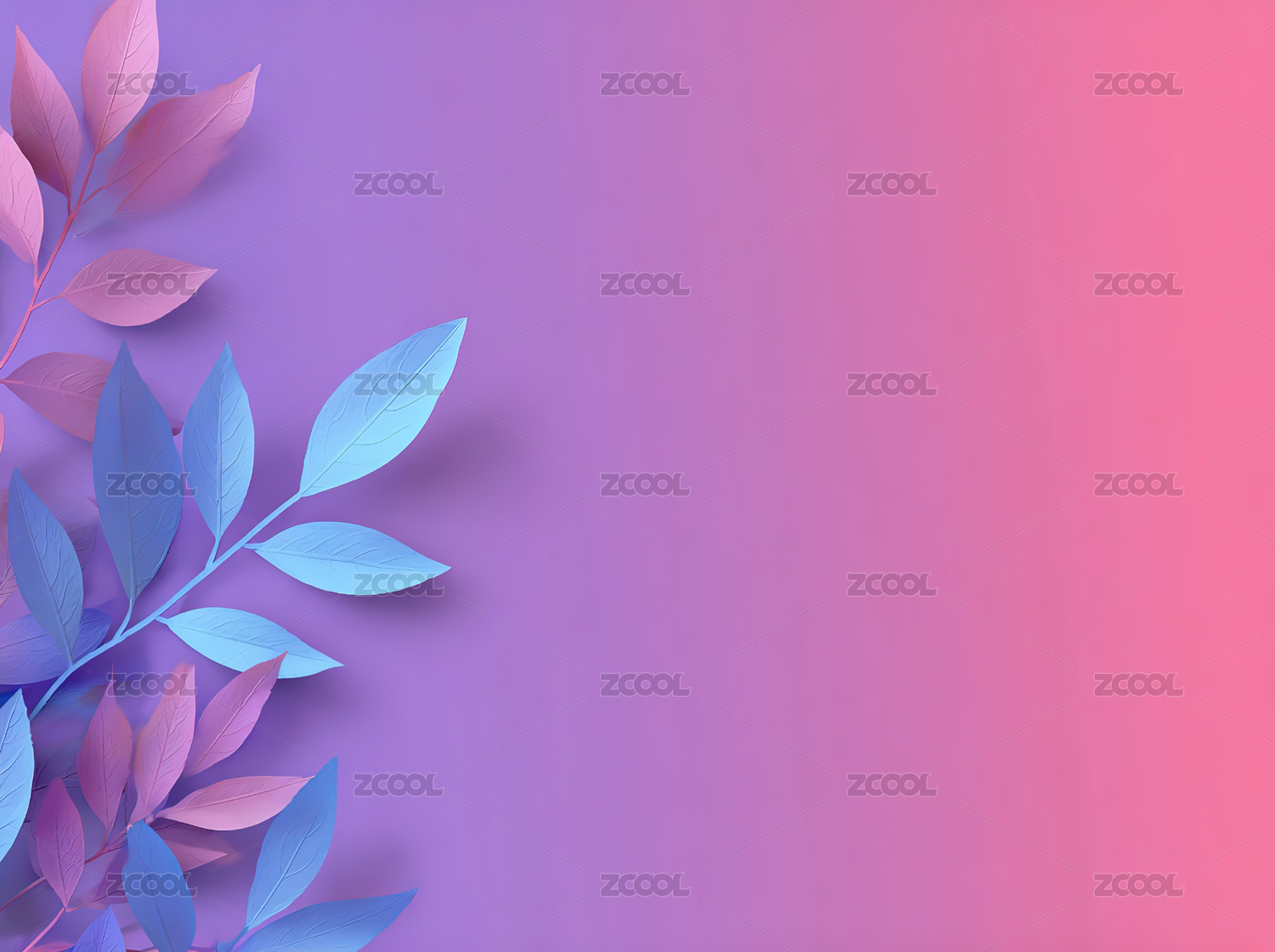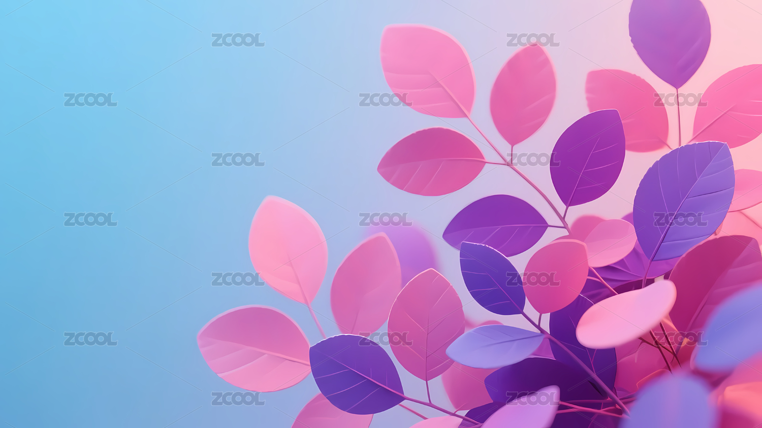 渐变背景上的紫色与粉色叶子