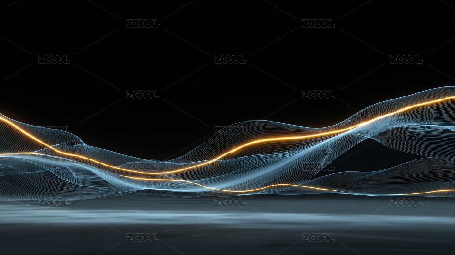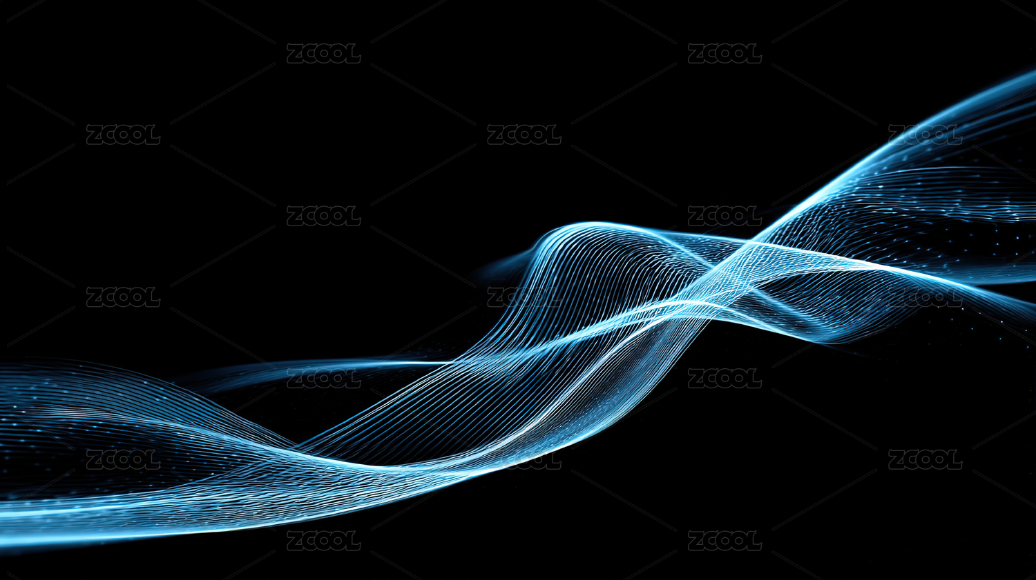 抽象蓝色线条在黑色背景上波动