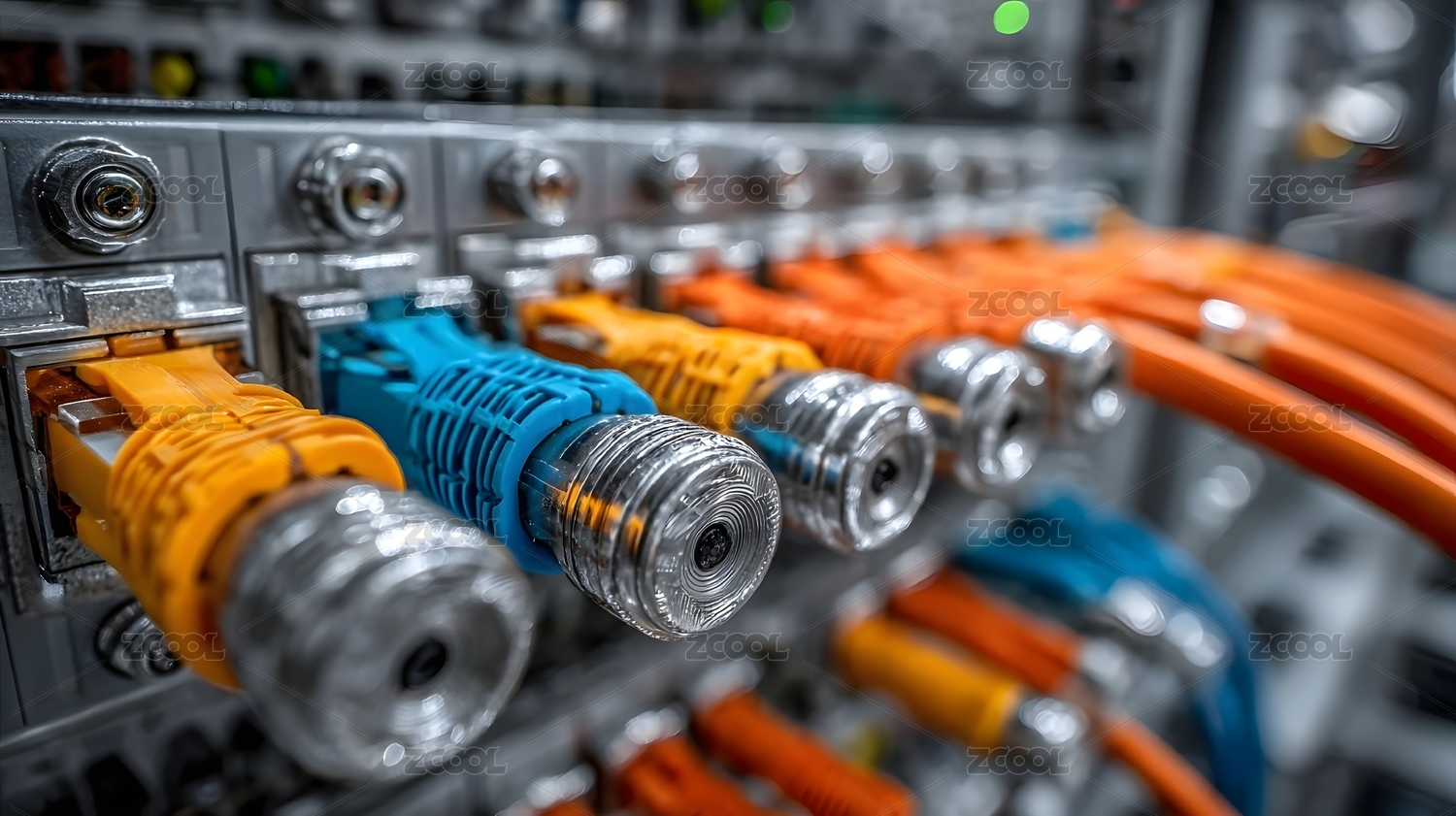 线缆,连接,机柜,网络,接口,电缆,蓝色,橙色,设备,金属