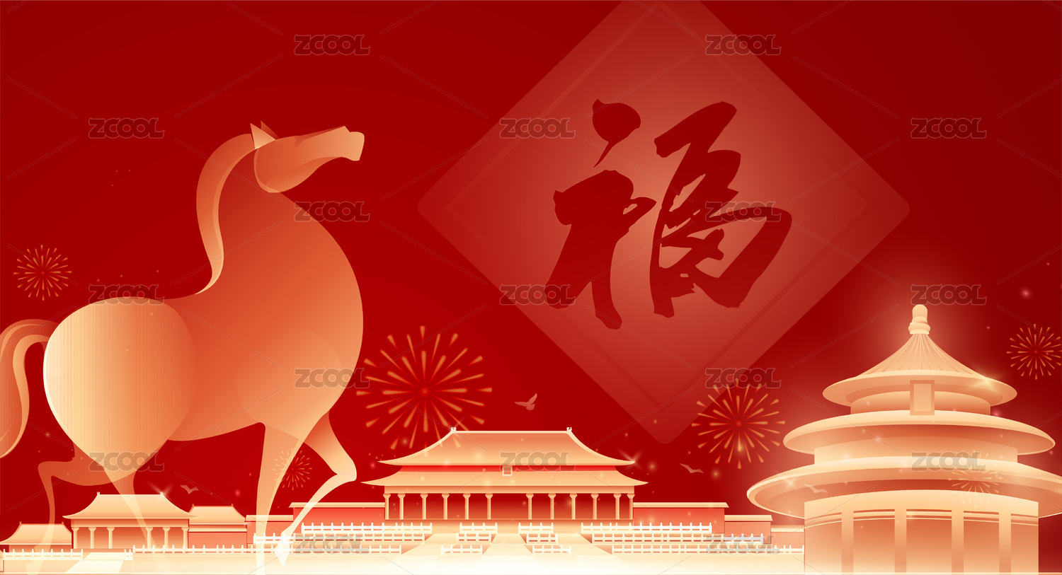 红色,庆祝,著名景点,旅游,城市,节日,建筑,马年,马,标志