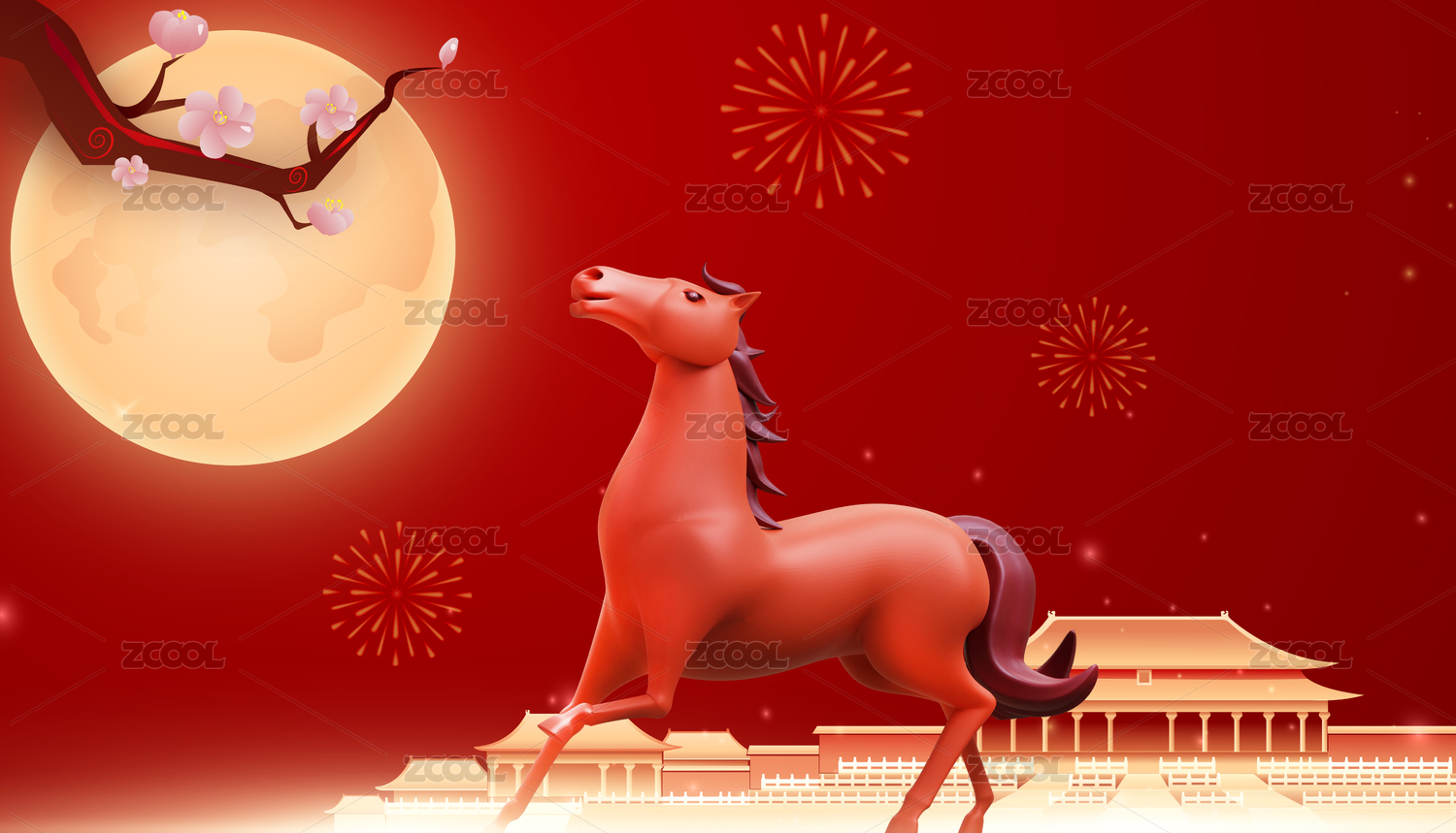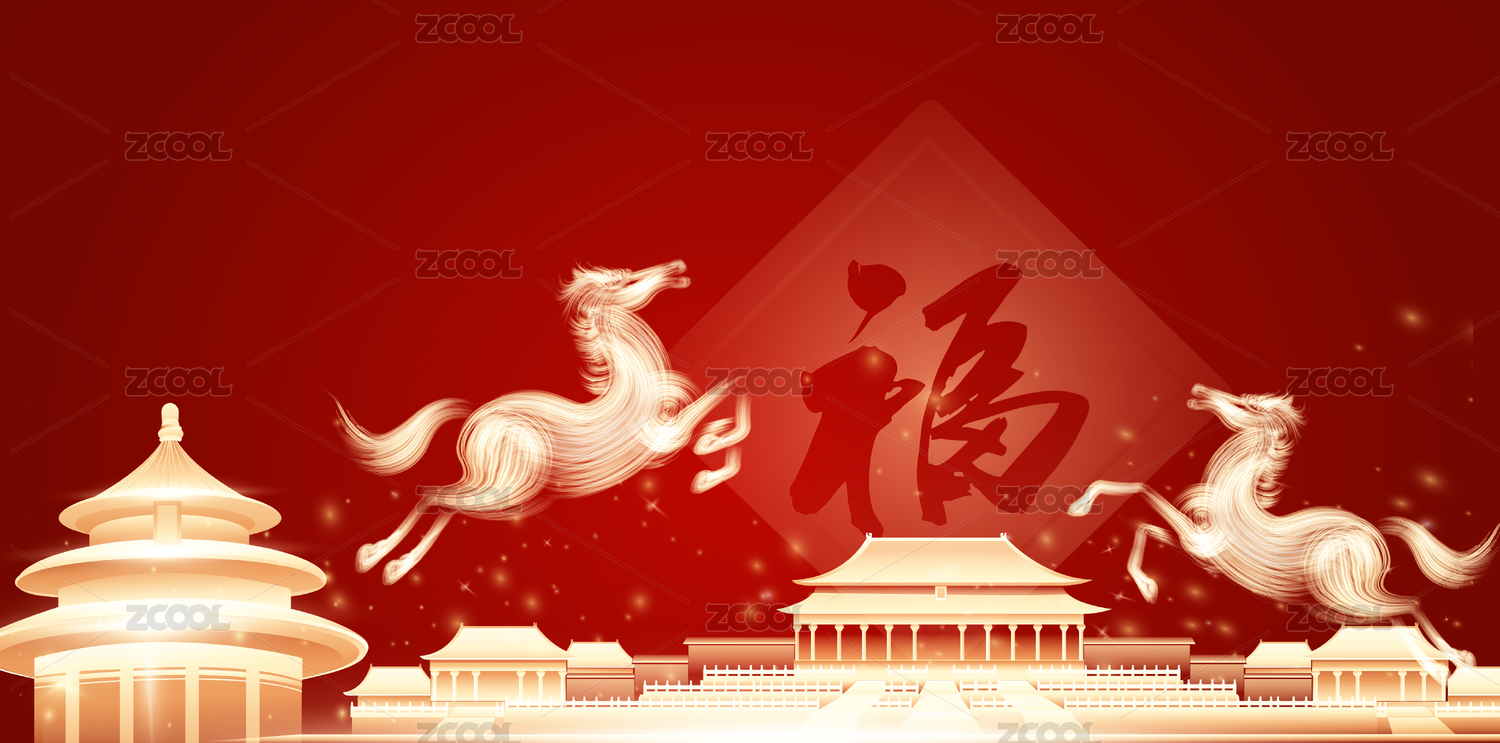 北京,春节,马年,2026年,庆祝,城市,红色,插画,背景,著名景点