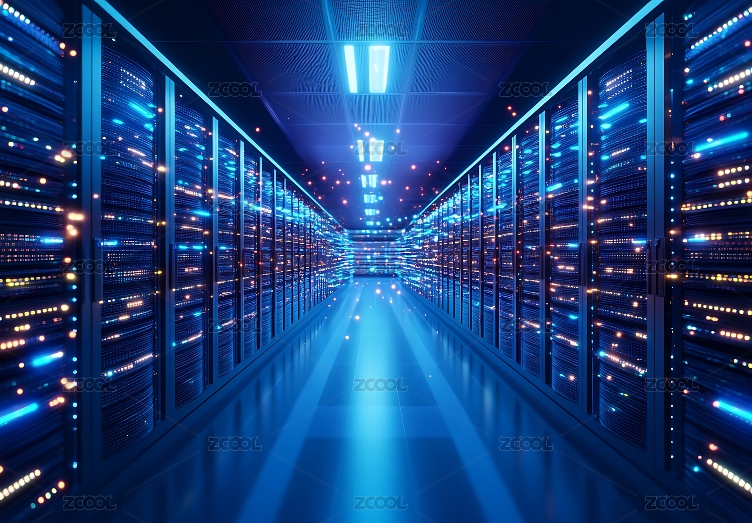 数据中心通道光影 科技未来感
