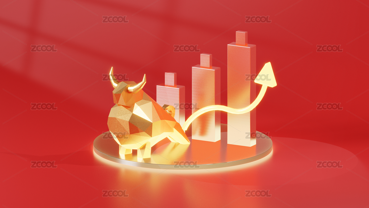 3D立体红色背景金牛和数据涨幅图组合