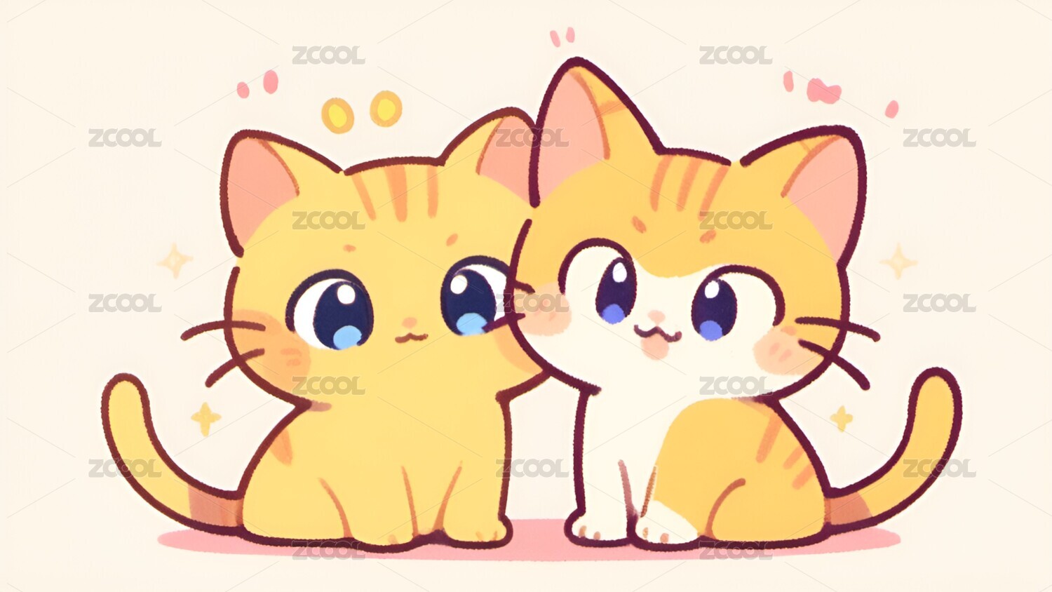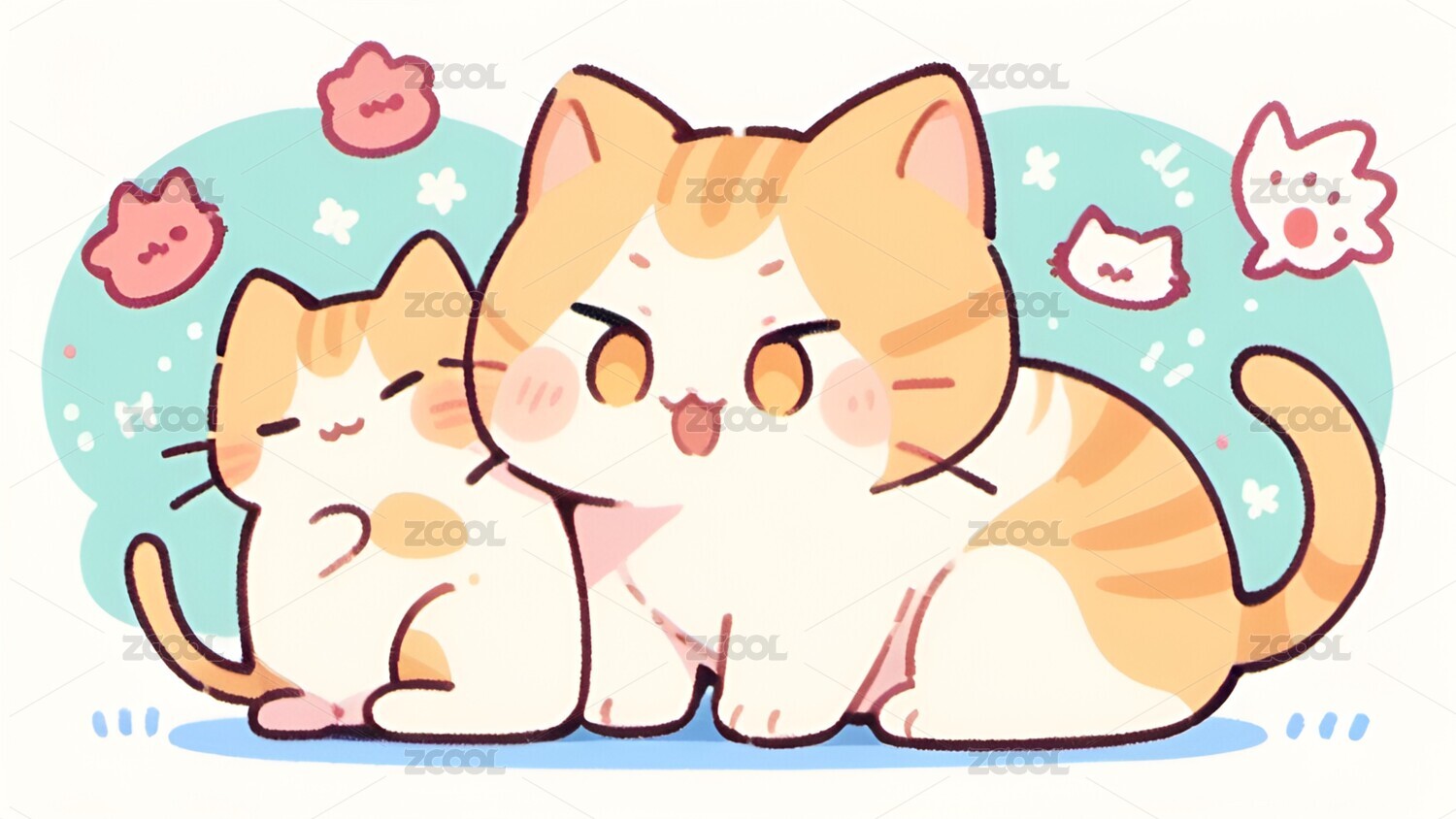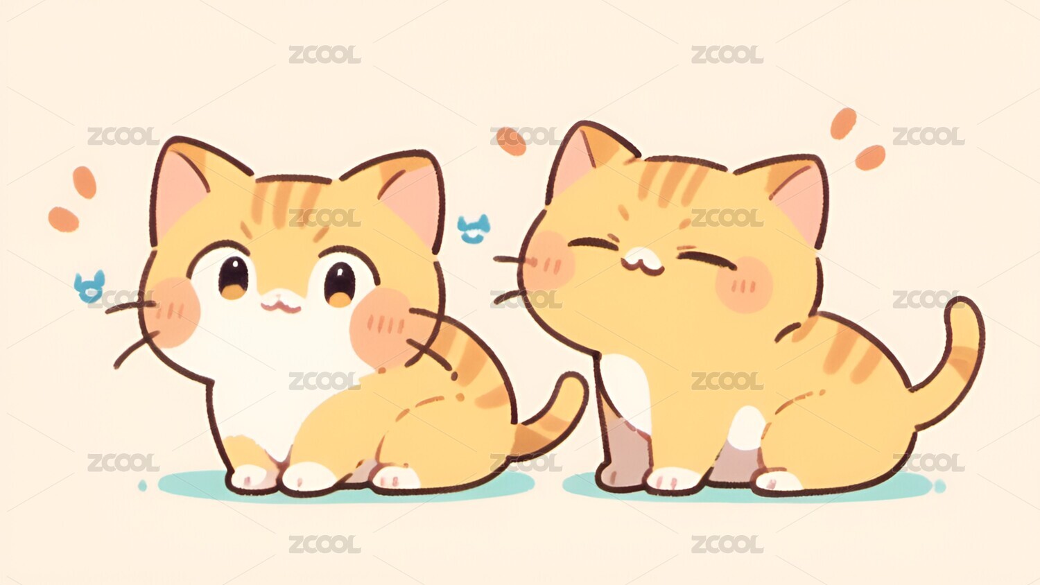 卡通,小猫,猫,动物,治愈,可爱,壁纸,插画