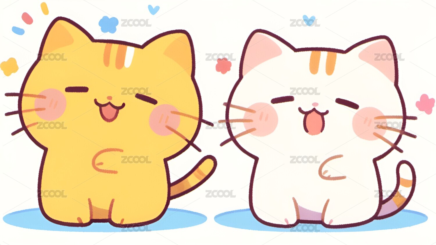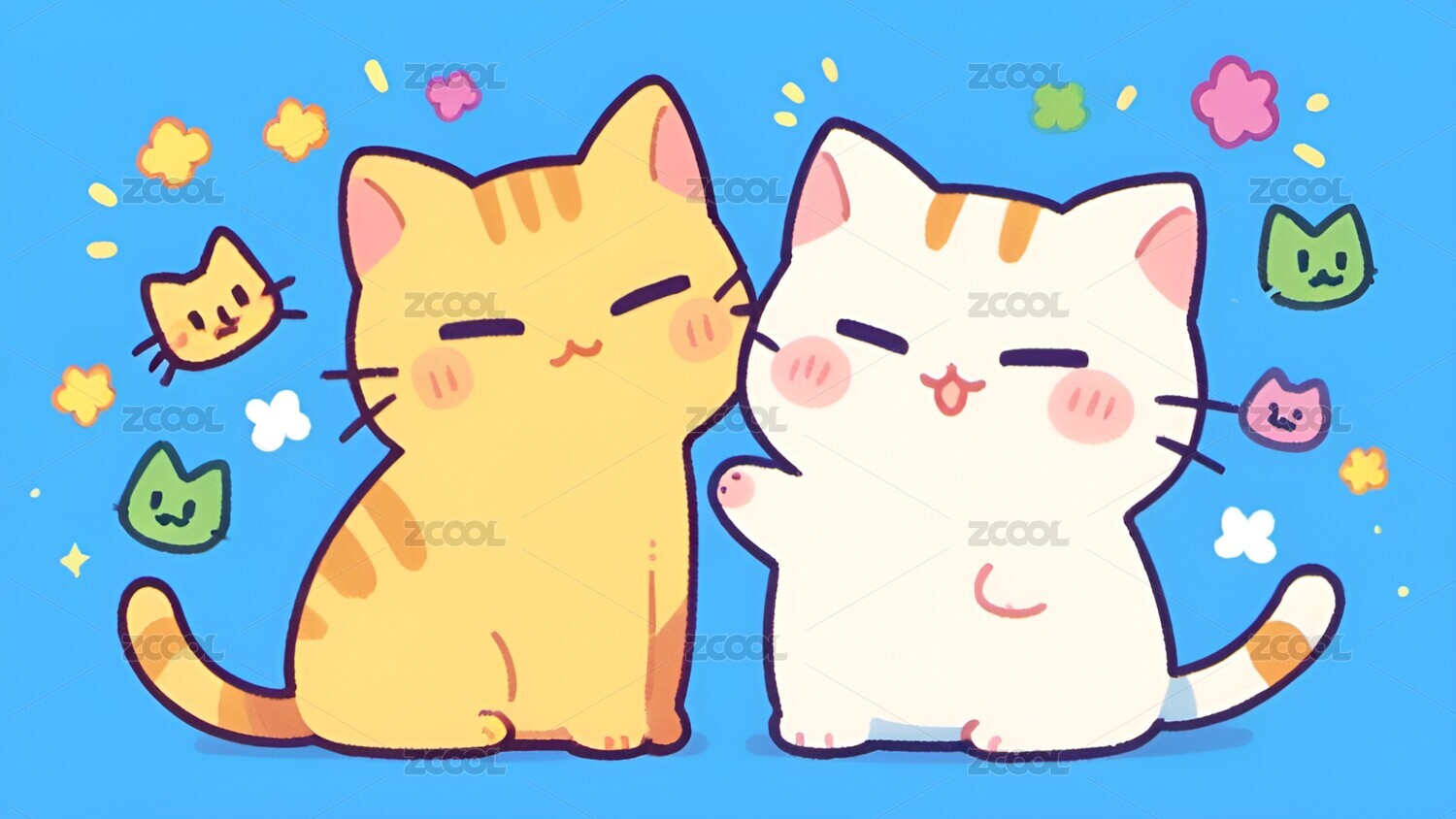 卡通,小猫,猫,动物,治愈,可爱,壁纸,插画