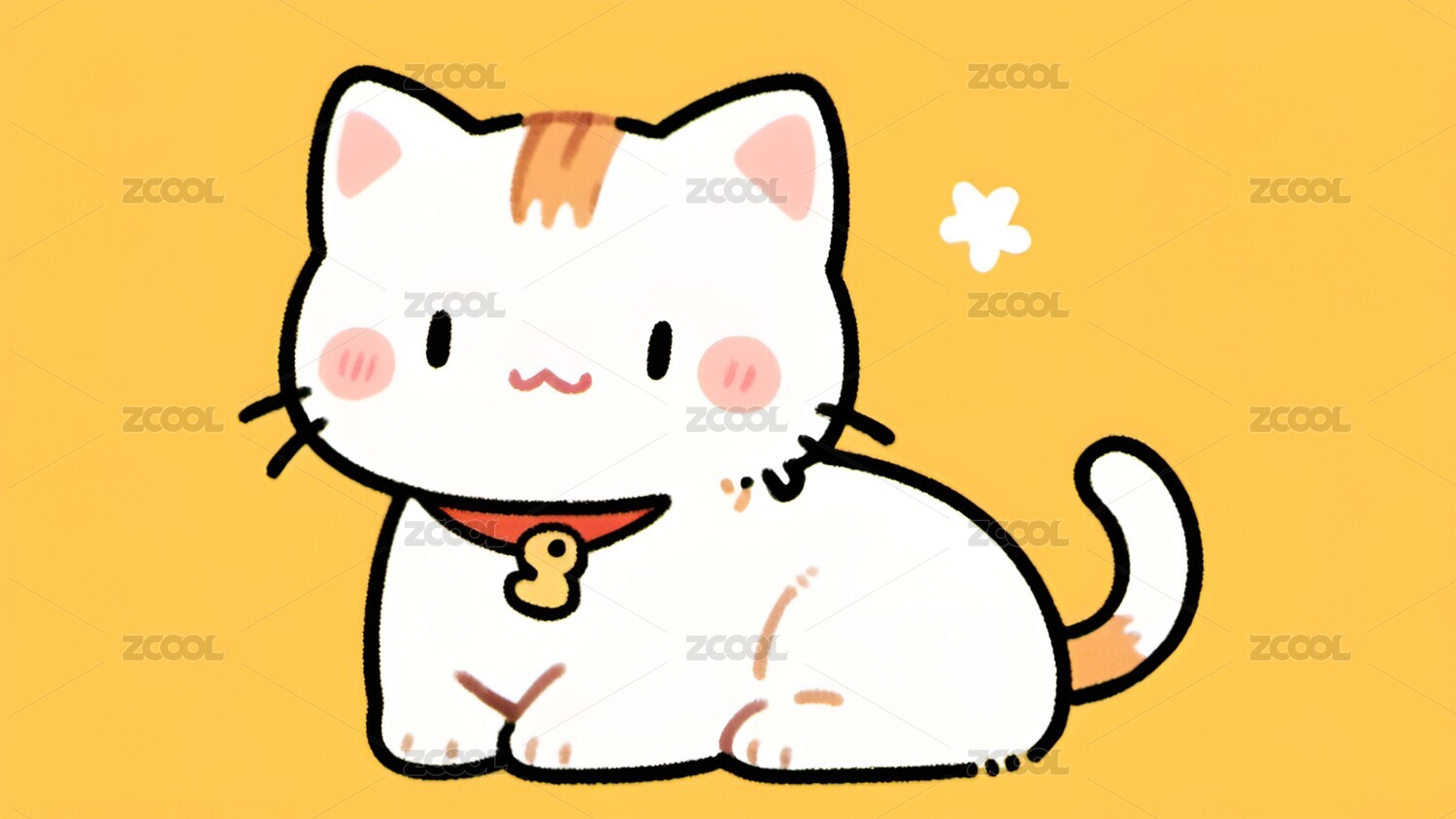 卡通,小猫,猫,Q版,动漫,漫画,动物,插画,壁纸