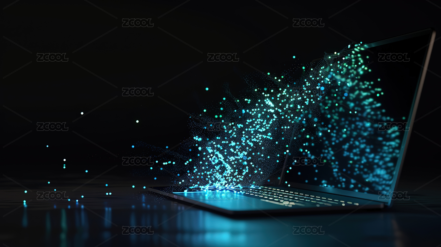 3D渲染科技抽象数字粒子组成的笔记本电脑