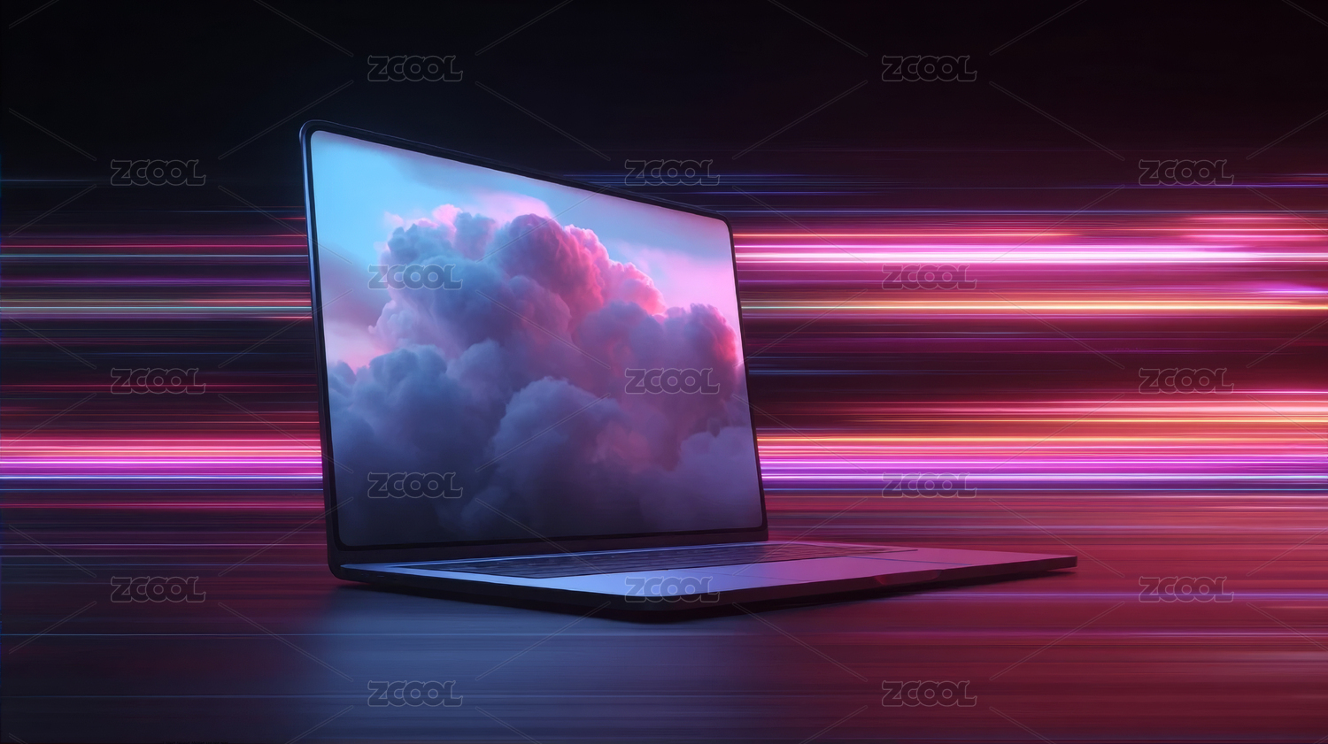 流光溢彩背景中的笔记本电脑