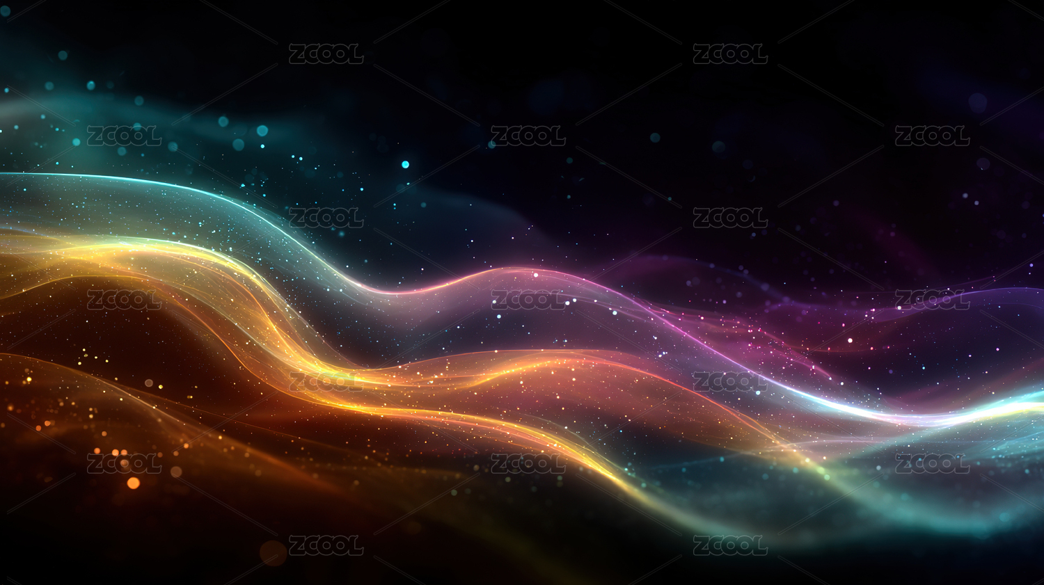 抽象的彩色背景与发光的波浪和粒子