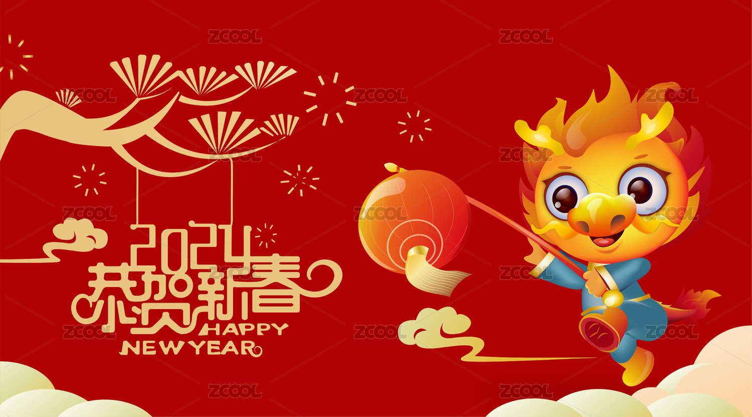 2024年中国龙年春节龙宝吉祥物卡通海报