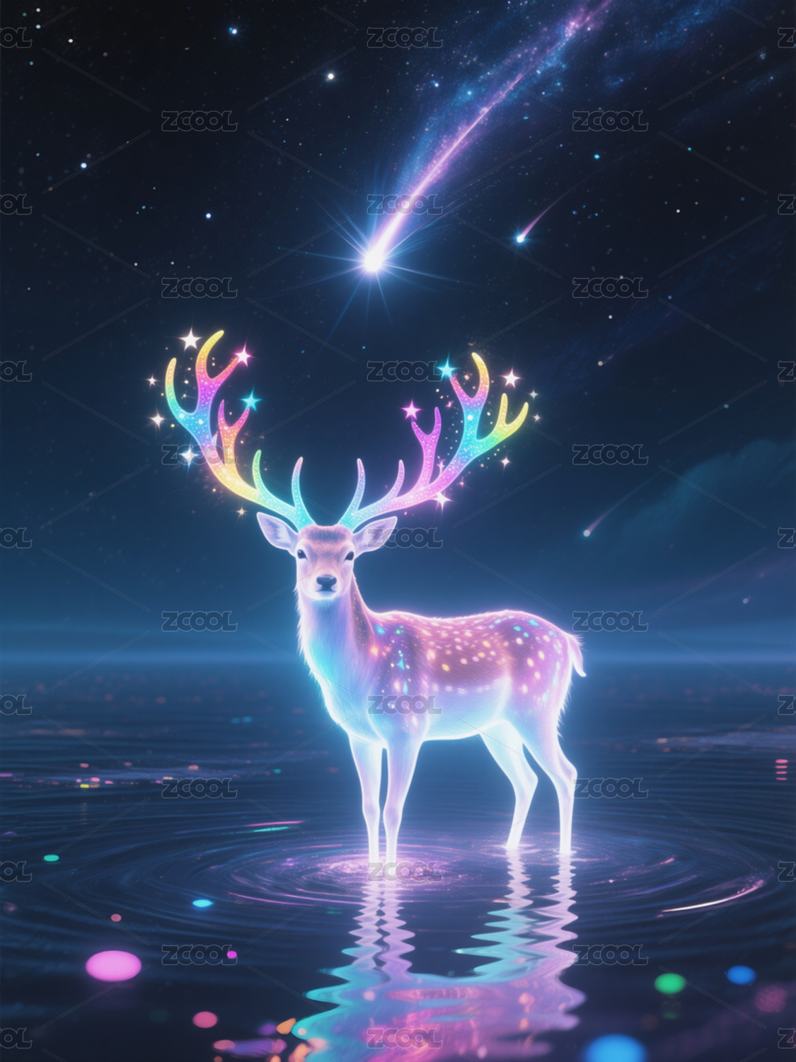 3D渲染国潮风插画梦幻唯美发着光的神鹿