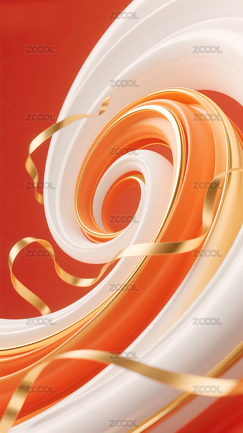 主视觉,商业,壁纸,色彩,装饰,丝带,橙金,场景,动感,螺旋