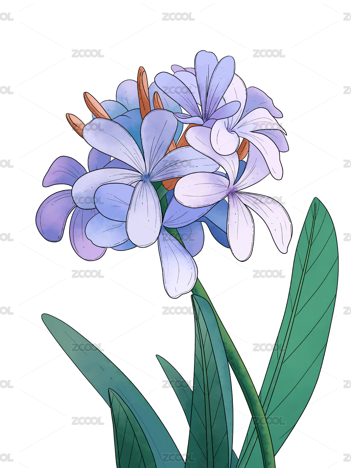 清新治愈系粉色百合单瓣鲜花花卉植物插装画
