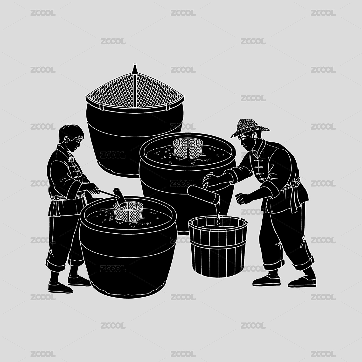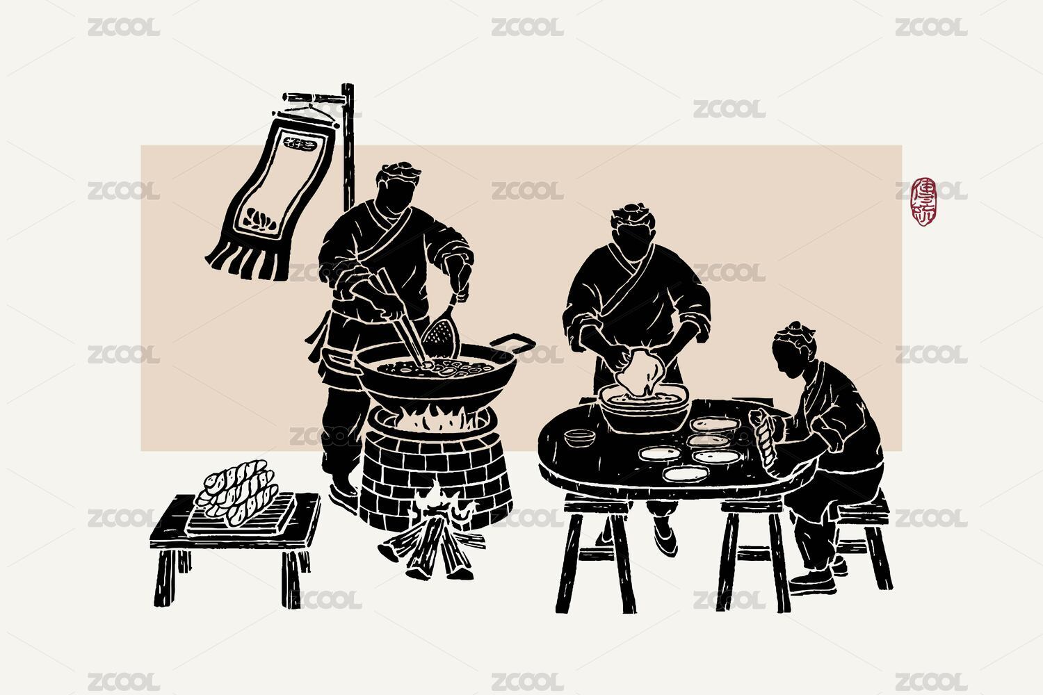 木匠,工匠,木工,古人,匠人,劳作,制作,过程,版画,中式